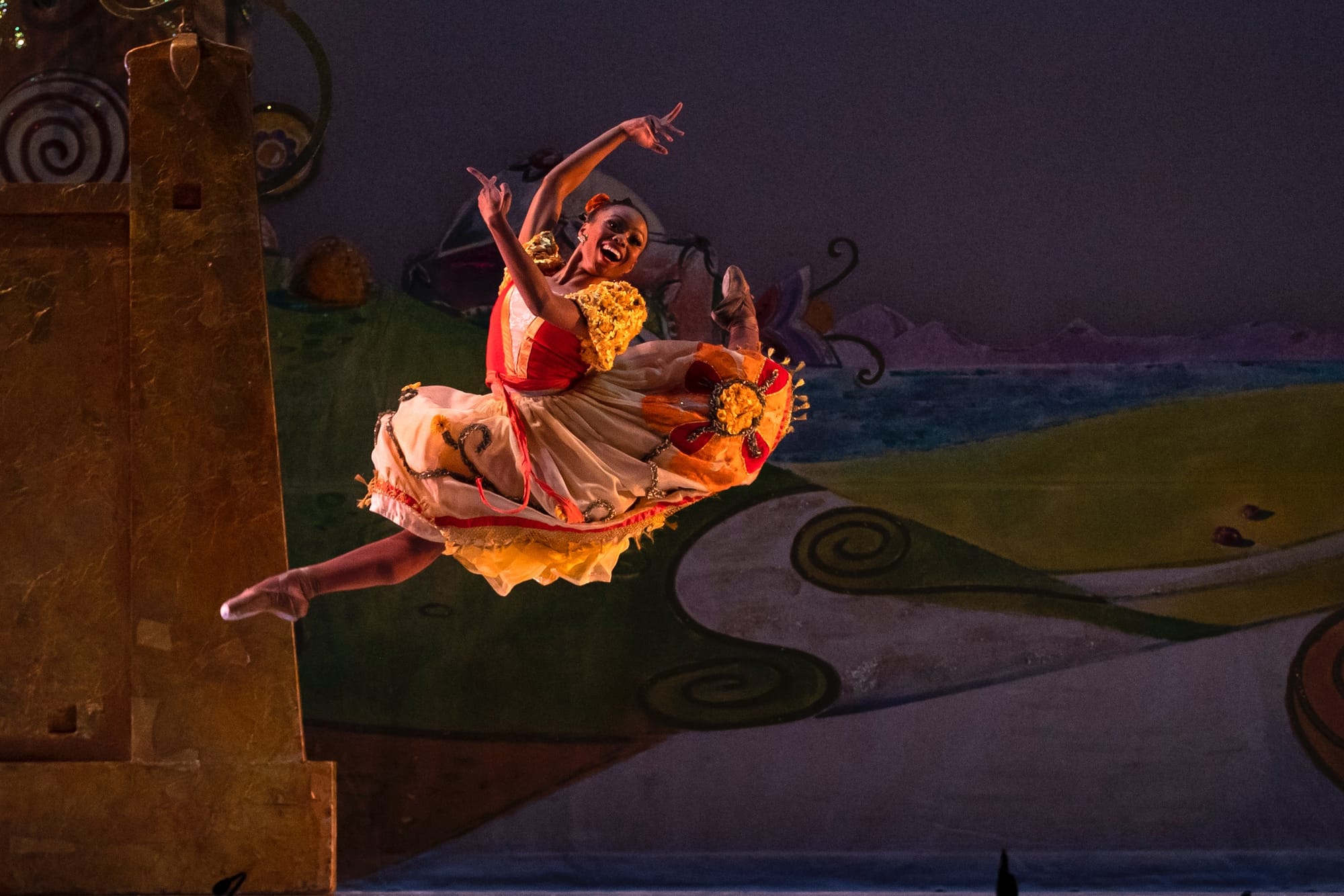 In Act II, Marie and her Prince were transported to the Land of Sweets by a hot-air balloon. There, they were greeted by a sweet group of mice who’d managed to eat their way through a cupcake but had been sentenced to lose their tails as punishment. Ever the champion of the underdog, Marie stepped in to save them, and the Sugar Plum Fairy (Jazmine Quezada) rewarded the two with a series of dances.