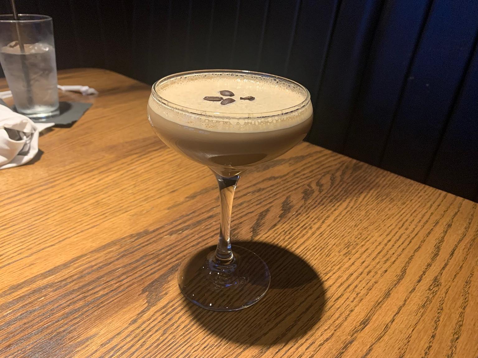 Next I tried an old standby, the espresso martini. As I’ve written before, I’m not much of a coffee drinker, but the last time I tried an espresso martini was at Cheesecake Factory, and you can probably guess who made it for me. This version of the martini, made with New Amsterdam Vodka, Kahlúa Coffee Liqueur, irish cream and cold brew concentrate was rich and creamy, more like a dessert drink than a before dinner spirit. I liked that the cream masked much of the coffee flavor, allowing me to enjoy the color and smell of coffee without dealing with its sometimes bitter taste.