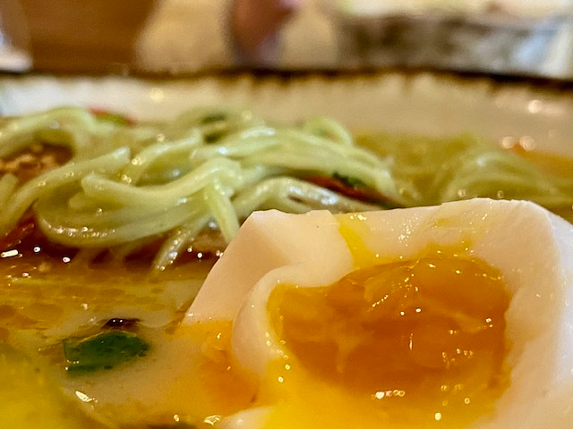 Lucky for me, Marufuku Ramen, located in Oakland’s Temescal neighborhood, serves up fast, steaming ceramic vessels brimming with cloudy broth, fresh veggies, a perfect egg, and a lovely mass of light green spinach noodles.