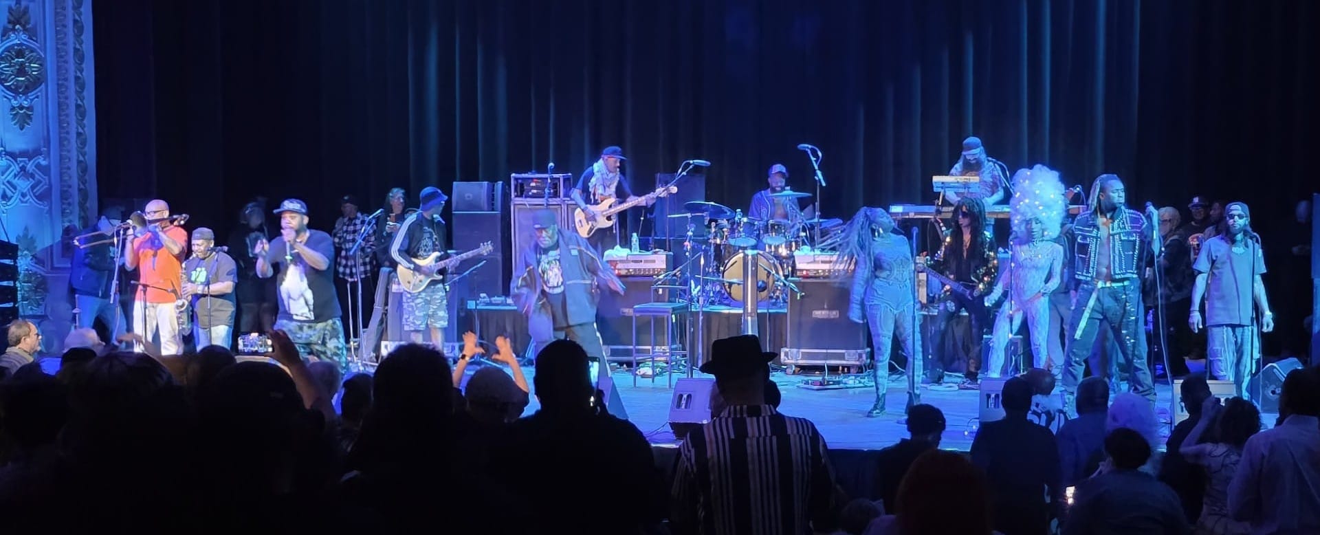 Through thirteen presidential administrations, George Clinton has funked on, and when he landed Parliament Funkadelic’s musical mothership at the Calvin Simmons Theatre at Lake Merritt last weekend, we were alerted to how much we need his message of radiant togetherness in this era of cold-blooded divisiveness. The event also brought together two Midbrow writers, Tony Daquipa and Jeff Kaliss, who sat down two mornings after to compare perspectives and reactions. Tony wears multiple hats as an employee of the City of Oakland, a musician working in traditional Filipino music and contemporary jazz, and an active freelance writer. Jeff is a veteran journalist and author covering a multitude of musics. Here’s what they talked about.