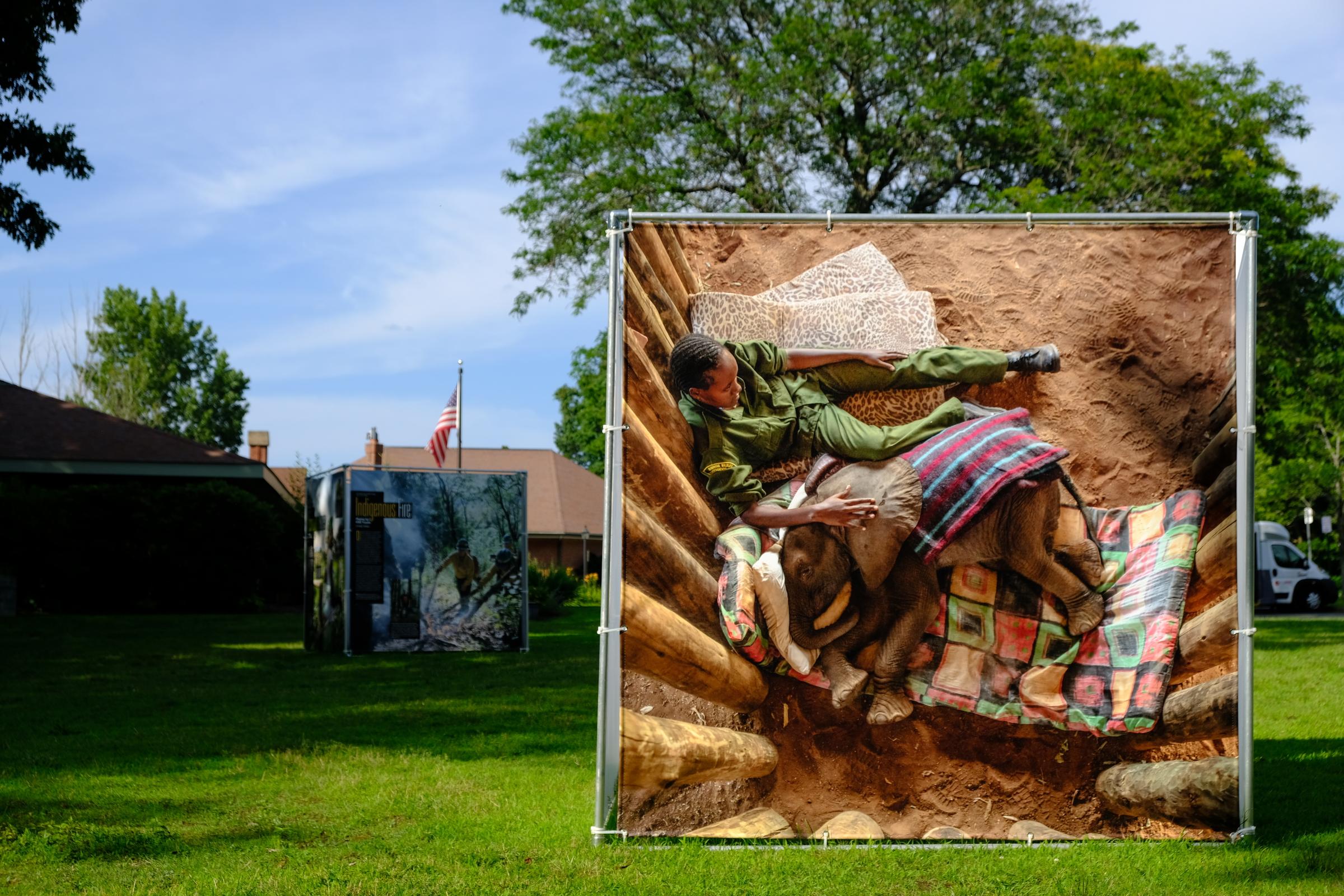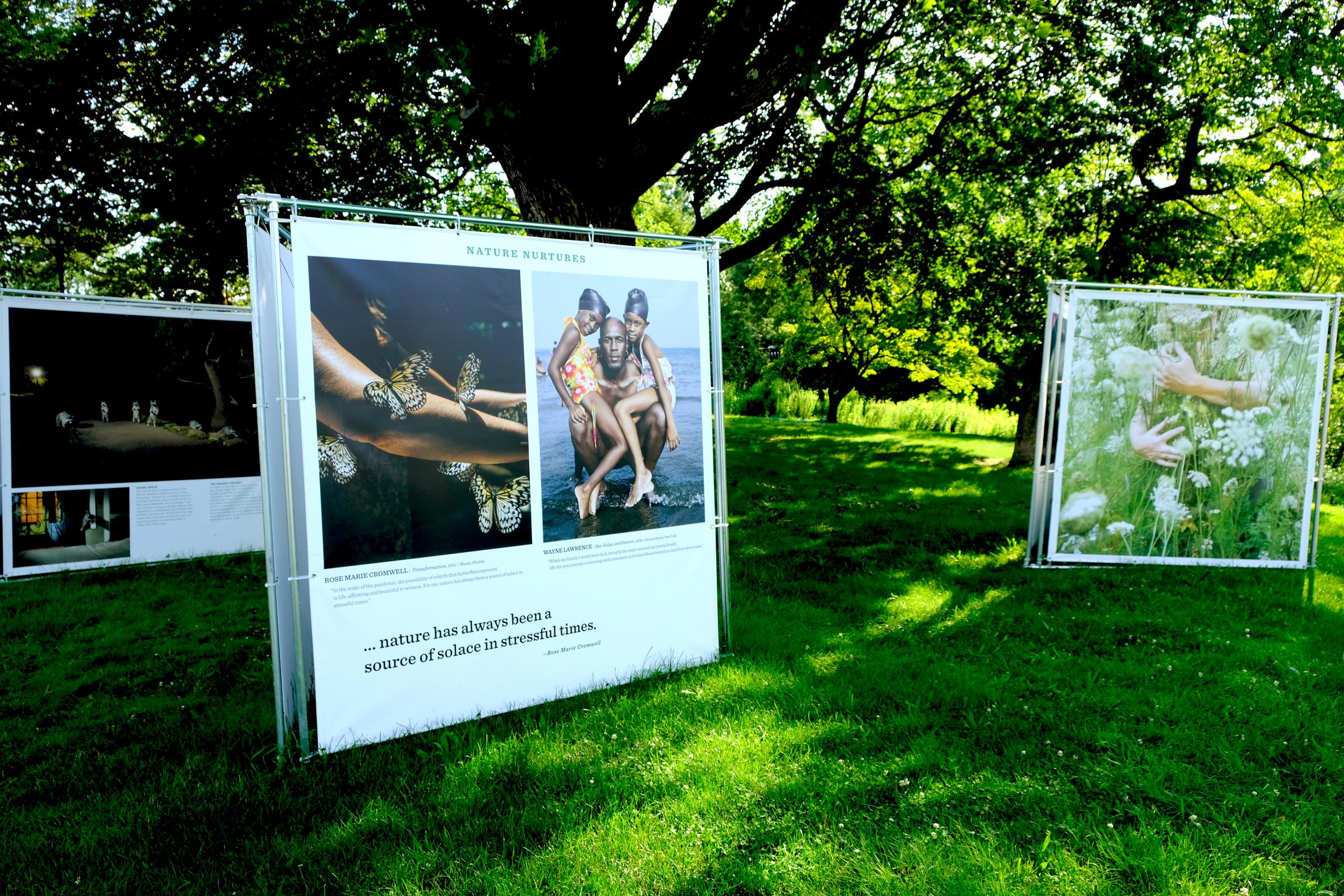 As I walked around the lake I bumped into several more cubes, including one titled “Sustainable Solutions to the Climate Crisis,” showcasing National Geographic photographer Ami Vitale. My favorite section of the cube (and not just because it was in the shade) was nestled right by the river and titled “Nature’s Nurtures.” Curated by Elizabeth Krist and Sarah Leen of the Visual Thinking Collective, it curated the work of 12 photographers who have documented how nature inspires and sustains them.