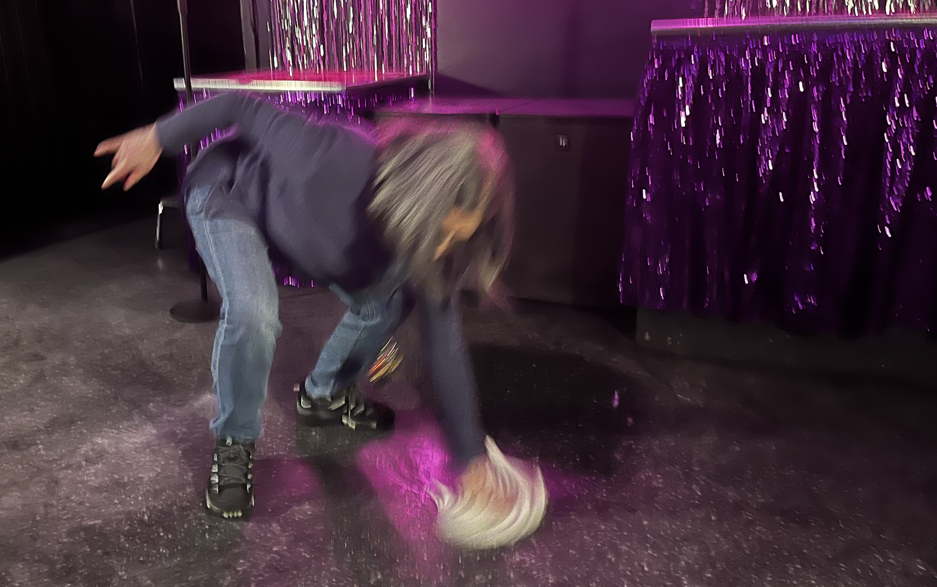 The collection of sketches celebrated our 21st century archetypes of womanhood by eviscerating them. Over the course of the night, we met a dog conversion therapist named Connie Lingus; observed a J.K. Rowling impersonator slur out false promises of alliance with anyone they could think of other than trans people; and got hit in the face by the bags of a girl wearing a 1960s headscarf who exuberantly picked up phone calls from Target, Navy, and Nordstrom while declaring: “Practical pants and outstanding outerwear? What an absolute treat!”