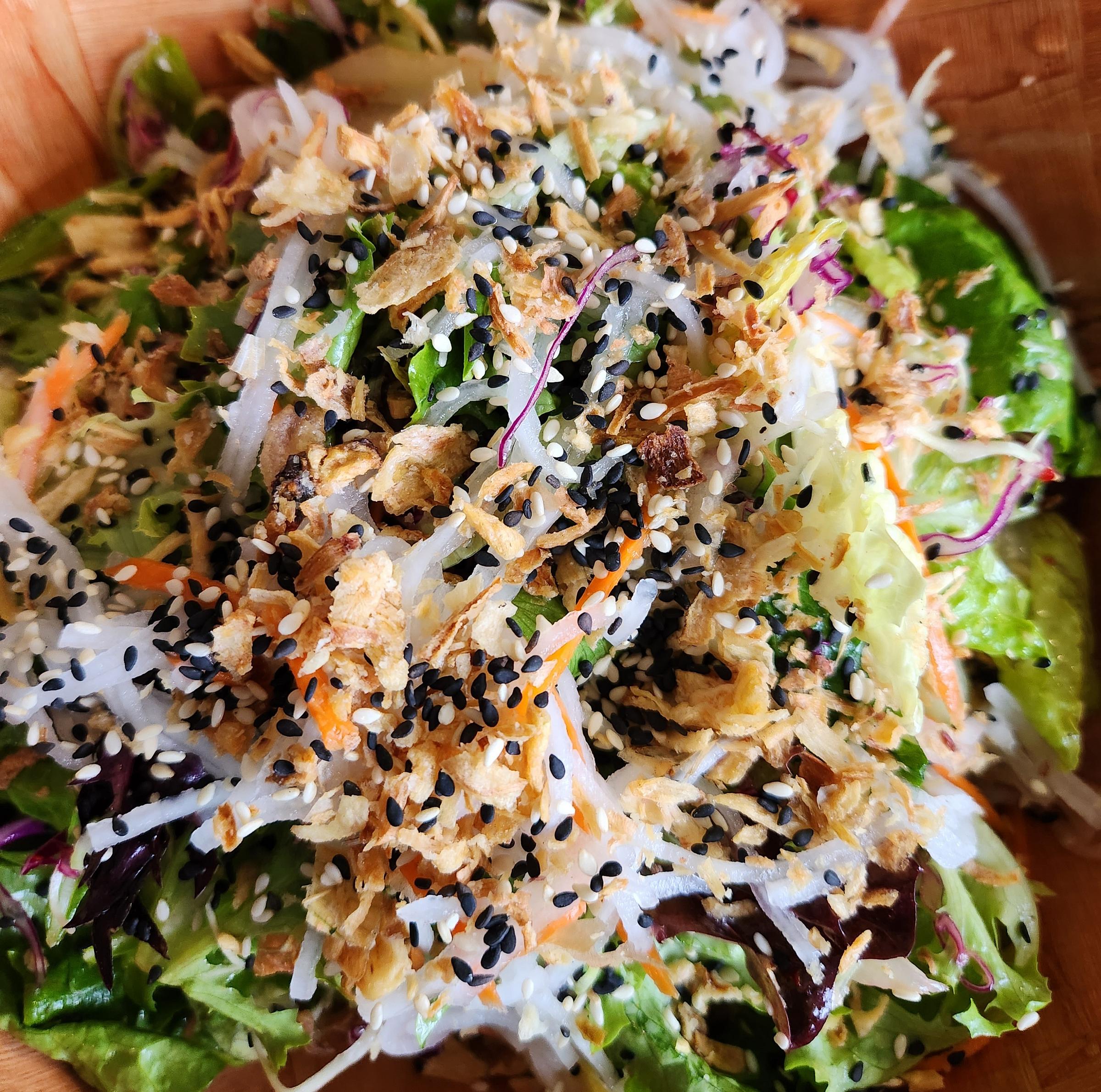 My friend ordered the brown rice bowl with roasted chicken added and I the sesame salad, making the mistake of not adding protein for myself. They were both hefty portions, with mine piled high and light.