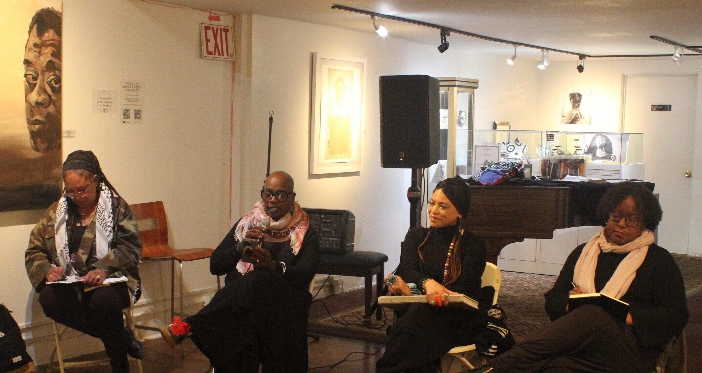 There was a nice flow to the evening, and after a short break it ended in a panel discussion with Black femme powerhouses. Organizer Cat Brooks, cultural strategist Ashara S. Ekundayo, artist Sabrina Nelson, and poet Tonya Foster shared rich narratives around their first interactions with Baldwin.