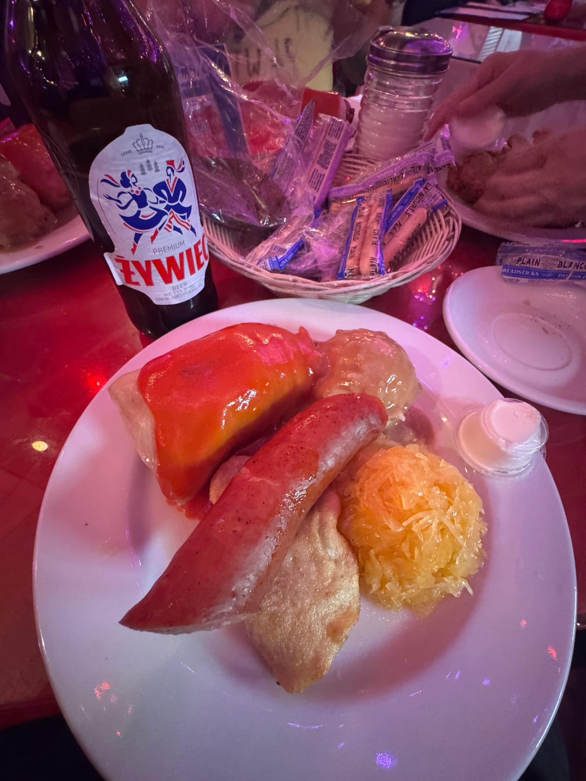 There’s only one dish I get here: the everything dish. I’m talking about the Polish plate, which offers a little bit of everything to everyone. We’re talking some stuffed cabbage, a single potato and cheese pierogi (I ordered a dozen to go), a slice of smoked Polish sausage kielbasa (the snap on the skin of this thing is something to behold!), some kraut (perfectly sour) and mashed potatoes on the side.