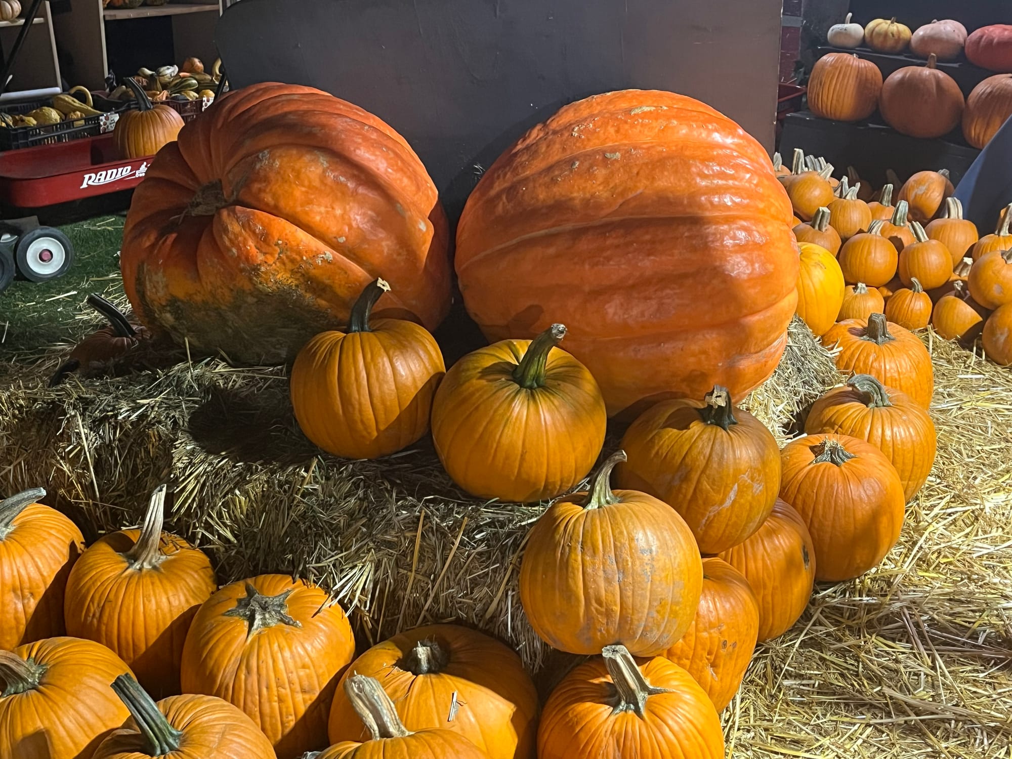 Located next to the 55-year-old florist shop J. Miller Flowers, the narrow entrance to the pumpkin patch doesn’t look like much. Once inside, it still isn’t much more than a brightly lit, wide hallway with Hallowe’en goods and decorations filling every nook and cranny. But keep on walking and you’re suddenly down a ramp and in an ivy-bordered backyard that opens up into a Wonka-esque space. In place of edibles, a plentitude of pumpkins of every shape, size, texture, and color occupy some hay bales and straw-strewn ground. Ghouls, skeletons, and menacing clowns keep watch over the patch, and red wagons are available for easy transport of chosen gourds.