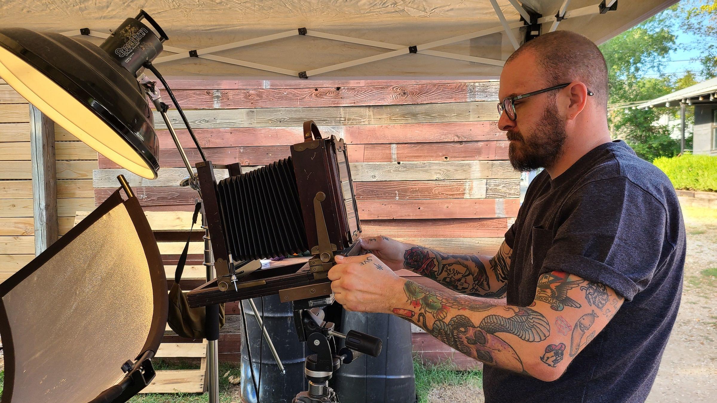 Thirty miles south of where a museum retrospective of Annie Leibovitz photos was opening in Bentonville, a tintype photographer named Matthew Nixson was shooting portraits of tattooed men and women at a vintage motorcycle show.