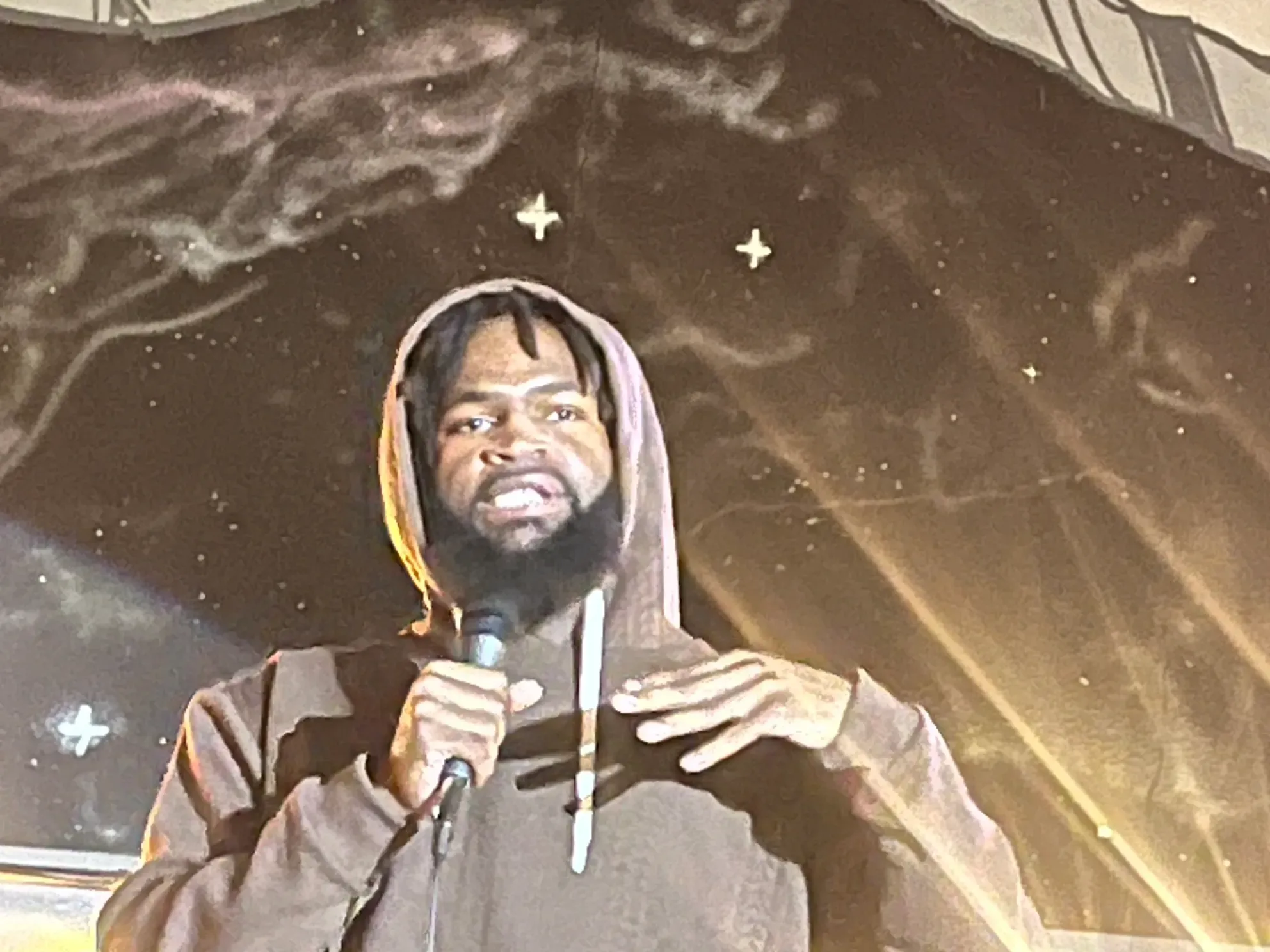 In the same vein, Uriah Jaquez, who produced the night’s show, said that he’s Latino and that he loves delicious cats and dogs. He also explained that his last name isn’t always easy for people to pronounce, recounting reserving a camping site at a national park where the ranger said, “Oh yeah, you’re campsite number twenty-nine, Uriah Hckuuuuuckkcc….”