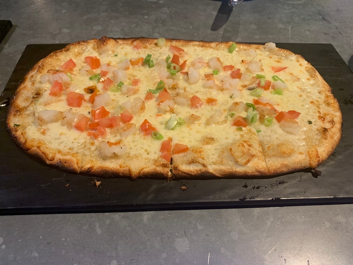 I first tried the shrimp scampi flatbread, which comes with seared garlic shrimp, a garlic scallion aioli, provolone cheese and diced tomatoes. The taste of the garlic matched perfectly with the shrimp and provolone cheese, with each flavor providing a distinct hit to my tastebuds. The crunch of the flatbread was great too, and it felt like I was eating a thin crust pizza with an extra crispy crust.