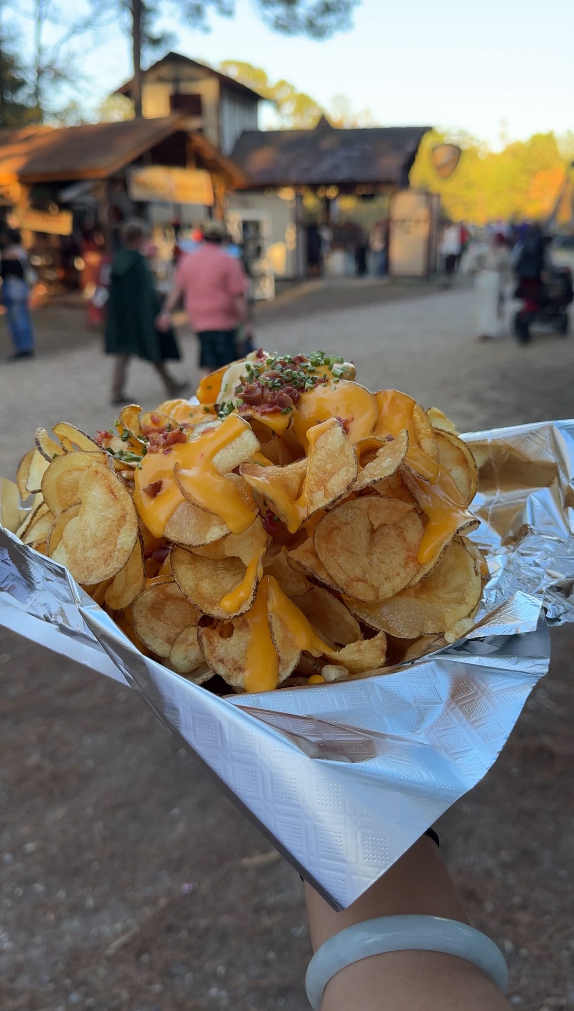 The blend of the old and new gives Ren fests their character and charm. It’s a place where people can eat freshly fried chips loaded with cheese sauce, bacon and green onions while watching armored men jousting on horses or shoot paintballs out of slingshot at Disney themed villains. Historical or not, that’s the magic of Ren fest.