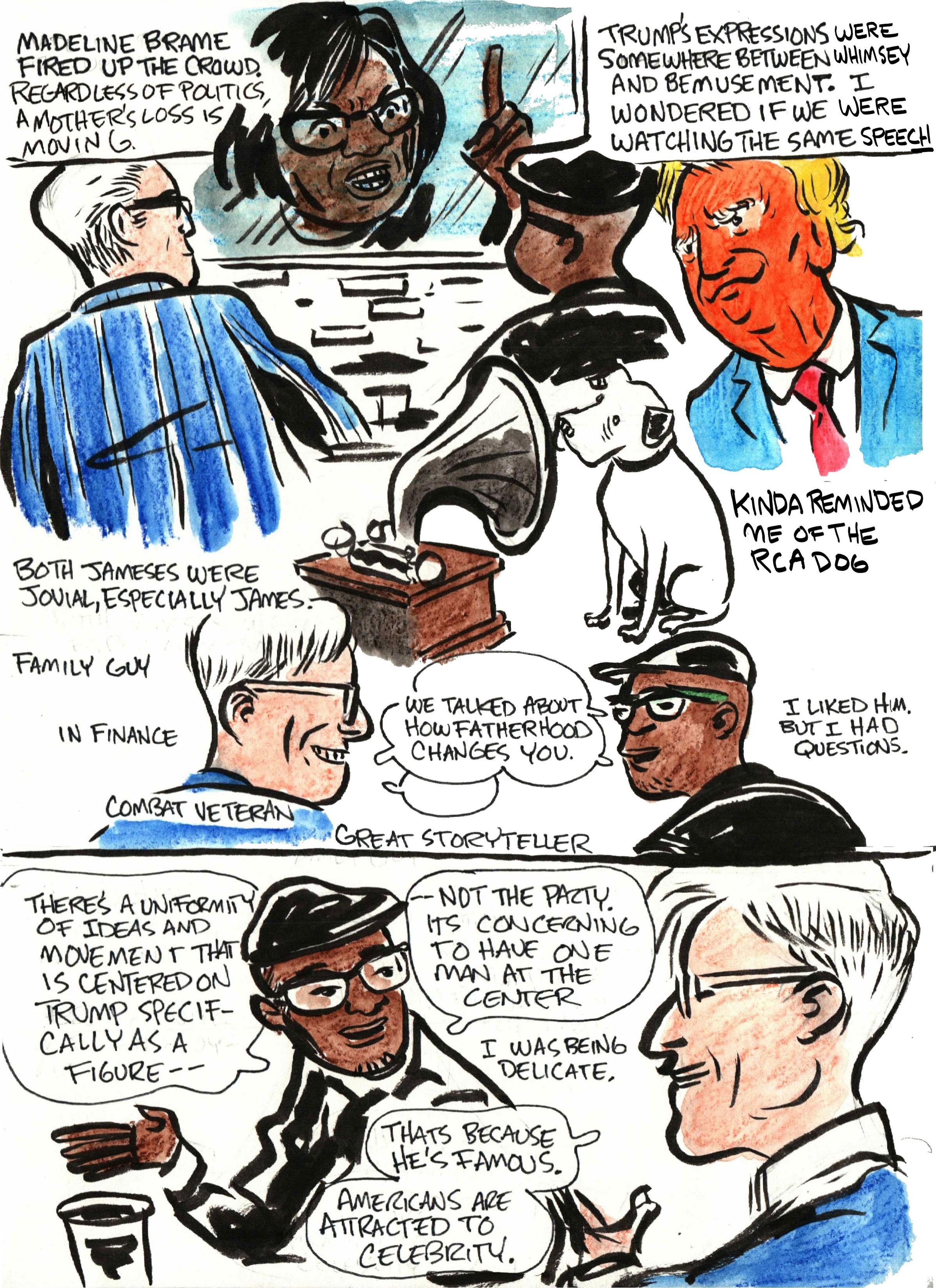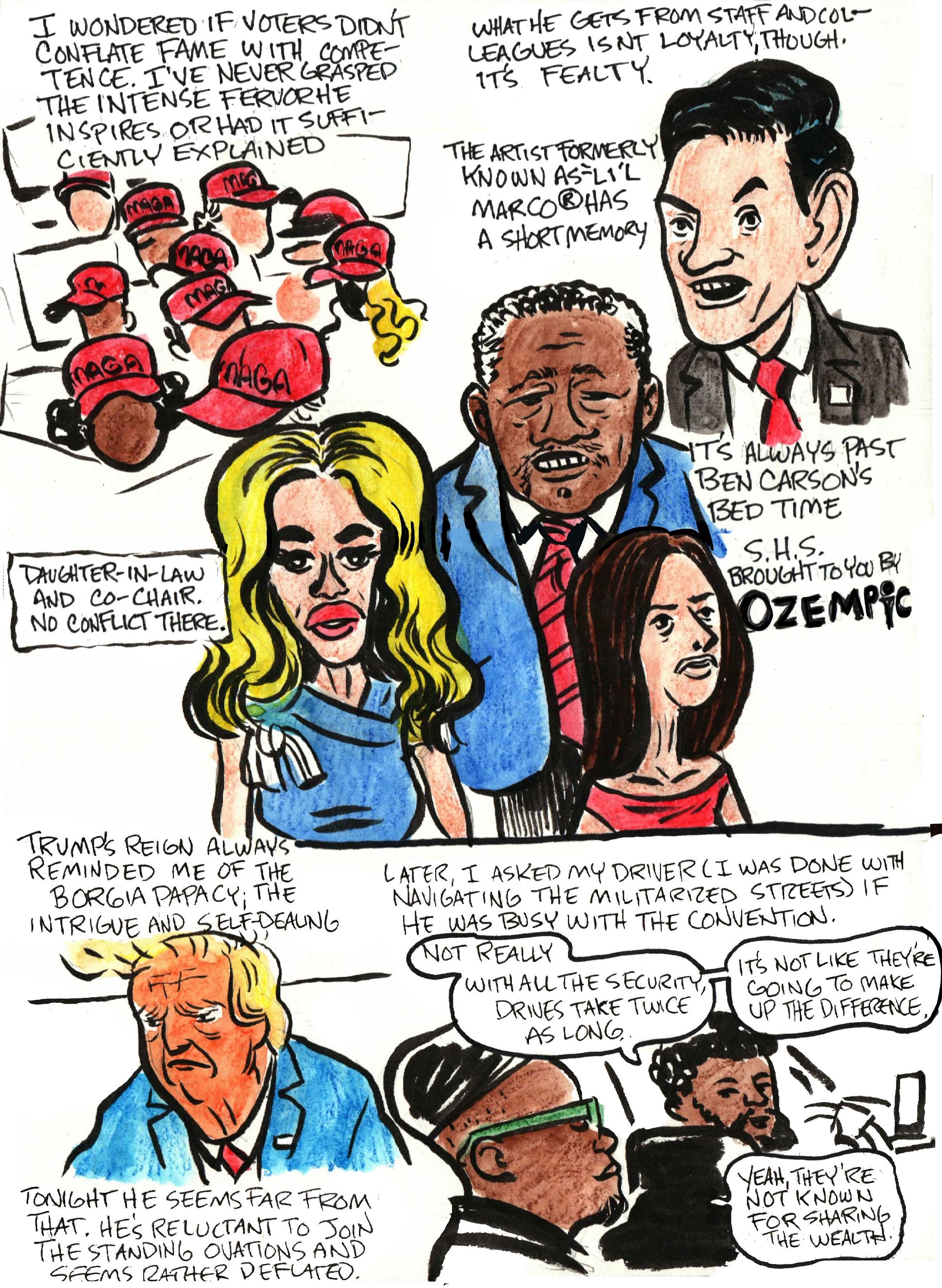 Oakland RNC Diary Day 3: The Barroom Watch Party Frederick Noland 18 Jul 2024 · 1 min read Previous entries:• RNC Diary, Day 1: The Trip• RNC Diary, Day 2: The States Strut Their Stuff