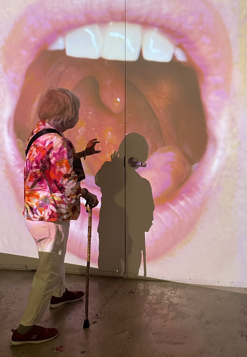Our guide asked us to choose a mug of tea to share, and we selected one with the words “World’s greatest mom!” printed on it before entering the exhibit. We were then instructed to place that mug on a saucer inside the gallery in order to initiate the interactive video and audio components of the show.