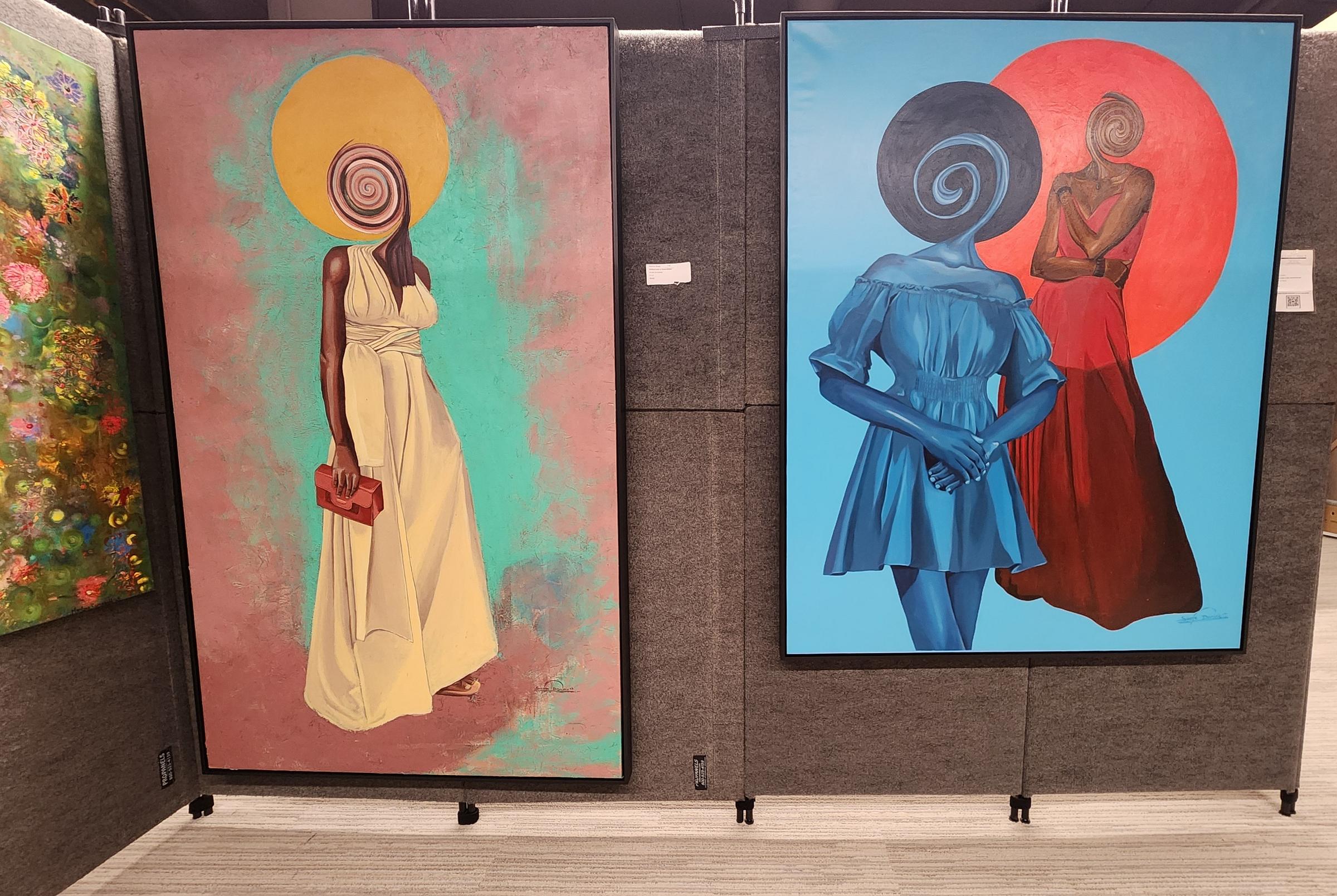 Chicago-based Stephen “Sayo” Olalekan’s works popped out immediately, spanning multiple surfaces and several media.