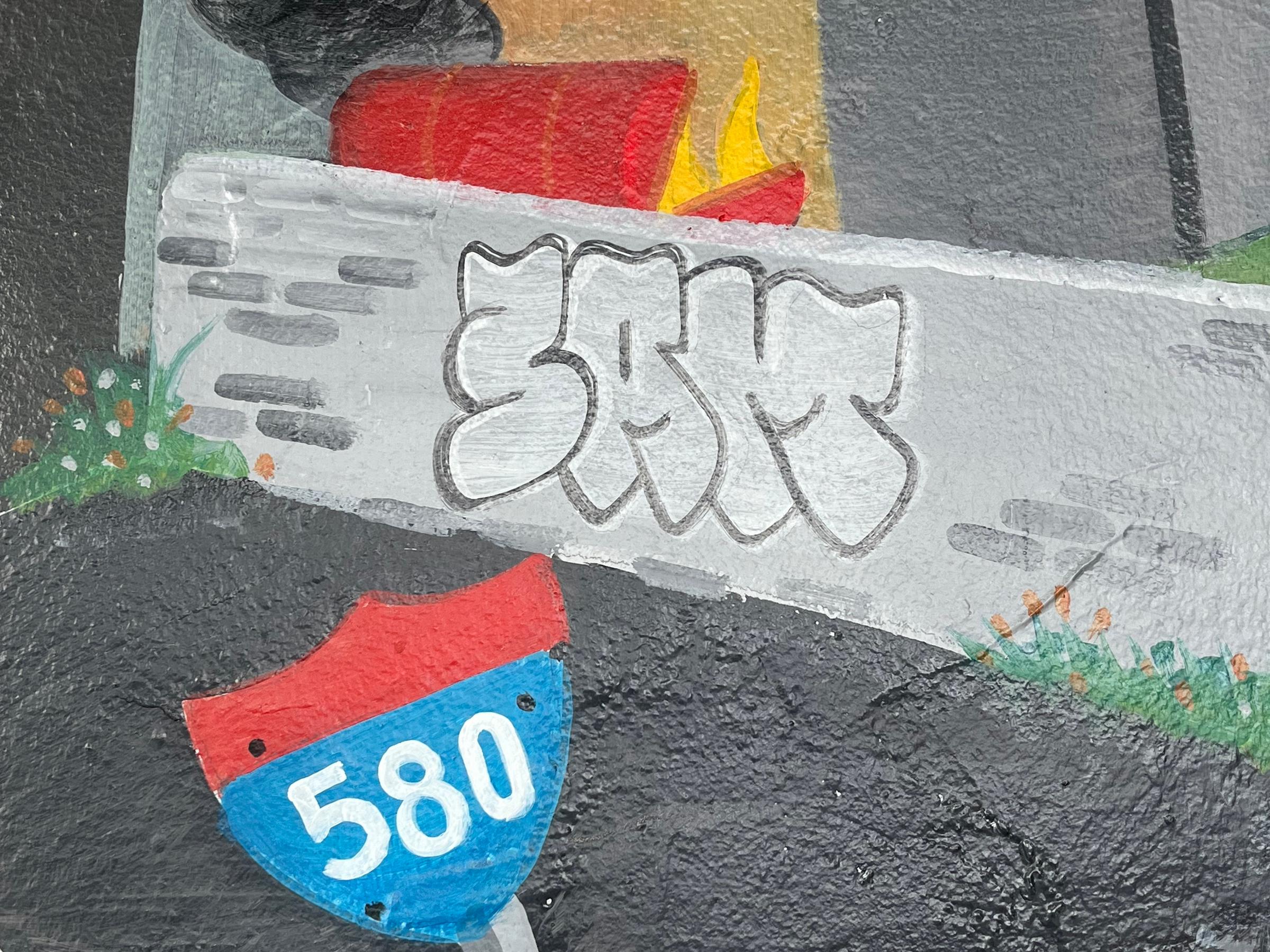 We sat down at a tiny table and — I’ll call him “Sage,” after the mural — spoke lovingly and with acute sadness about the other co-founder, William Kavner. A prolific graffiti artist and muralist originally from Reno, Kavner died in June of 2022. Sage told me that Kavner left behind an 8‑year-old daughter. It seemed Kavner’s memory and ethic are a large part what drives how Sage described Last Ones: “It’s about the collective more than the individual.”
