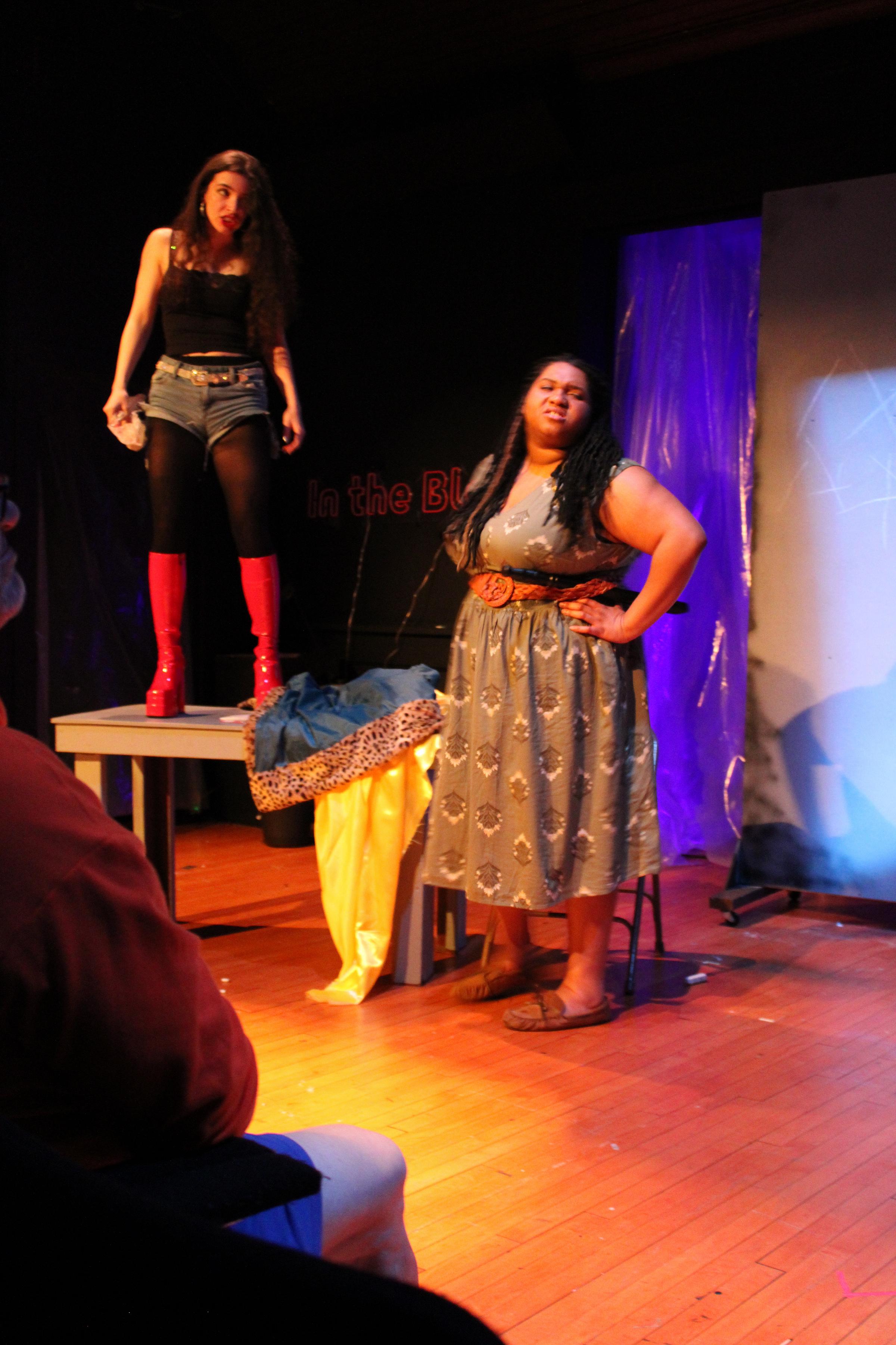 Each of these five characters sexually exploits Hester; each character talks at Hester, not to her, constantly putting her on the defensive. It’s a tough role to play; leading lady Nicole DamaPoleto walked a delicate line having to portray a character rendered helpless by societal circumstances without frustrating the audience with her passivity. It helps that the script is suffused with acidic wit. (At one point, Hester tosses her junkie friend a bit of sewing and quips, “You’re good with needles. Thread this.”)