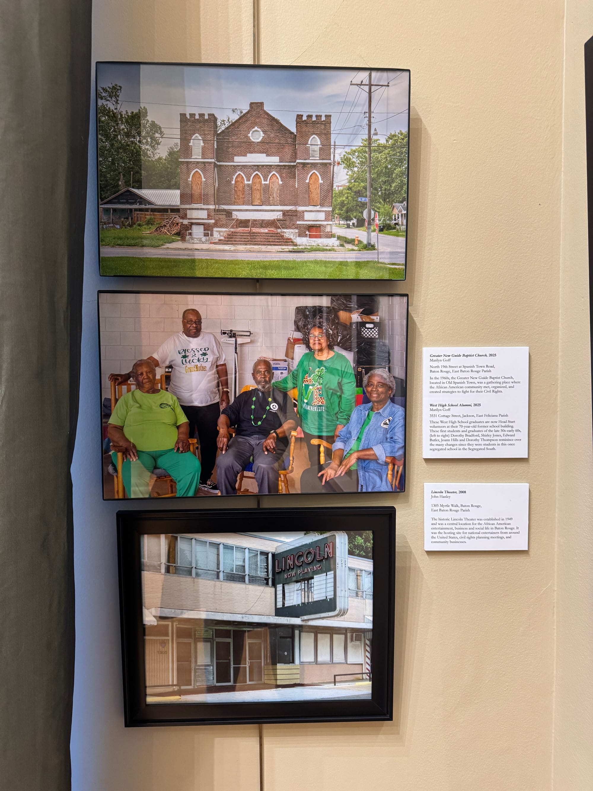 Another photo shows the exterior of the Lincoln Theater, which looks mostly dilapidated. The photo, by John Hanley, was taken in 2008. The informational panel says that the theater was a central location for African American entertainment, business and social life in Baton Rouge as well as civil rights planning meetings and community business. A quick google search would tell you that the building is the subject of a decade-long restoration project that will include a new Louisiana Black History Hall of Fame Museum and Cultural Center.