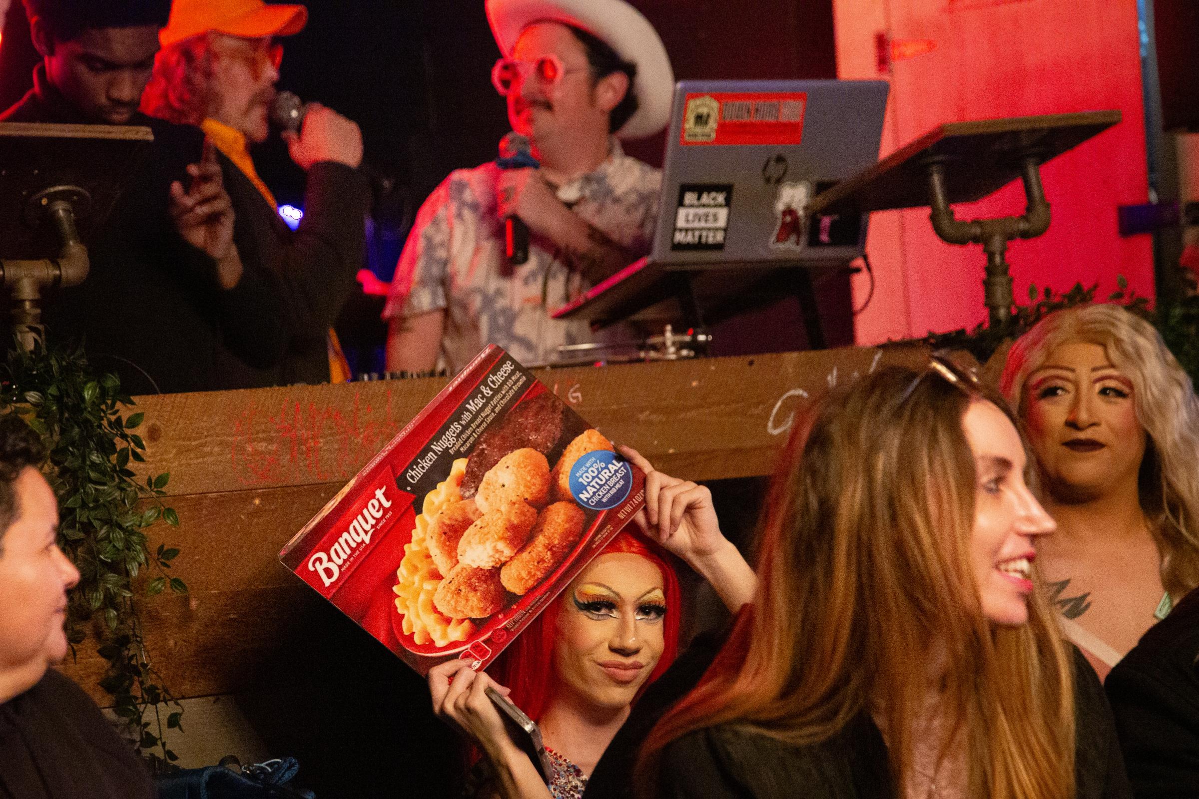 The crowd cheered. Rosie inserted, then removed and bestowed upon eager viewers, her “TV dinners.”