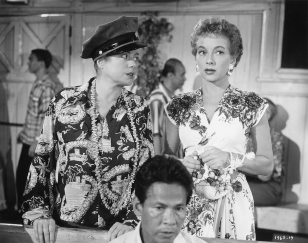 What makes Hell’s Half Acre particularly compelling is its handling of race, something that wasn’t often seen in mainstream films of the time. The film’s Hawaiian setting opens the door for a diverse, multi-racial cast (admittedly more Asian than Polynesian), which was groundbreaking in a Hollywood still entrenched in the Hays Code’s rigid racial boundaries. Korean-American actor Philip Ahn, who plays Roger Kong, is romantically paired with Marie Windsor’s character—a bold move for the time. Even Nancy Gates’ character is revealed through dialogue to be mixed-race, which further underscores the film’s progressive stance. There was a growing fascination in the 1950s with Eurasians and mixed-race romances, fueled by America’s post-war occupation of Japan and the Korean War. Hell’s Half Acre fits into this trend, with its portrayal of mixed-race relationships and Asian-American characters in significant roles—something rare for the era. The film’s willingness to show these complex relationships not only pushes against the racial constraints of the Hays Code but also highlights how far American cinema was from representing the true diversity of its population.