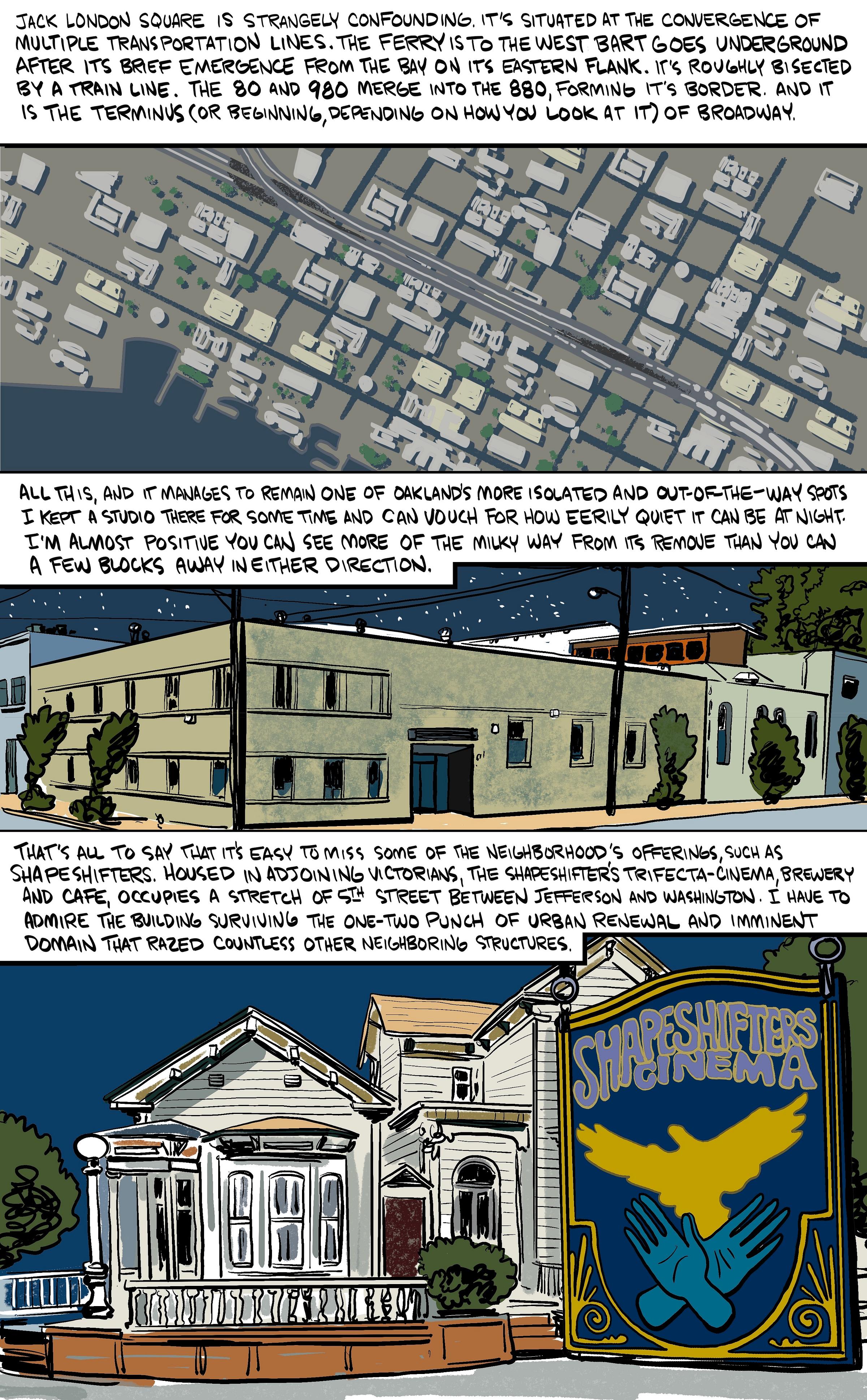 Housed in adjoining Victorians, The Shapeshifter’s trifecta—cinema, brewery, and cafe, occupies a stretch of 5th St…I have to admire the building surviving the one-two punch of urban renewal and imminent domain that razed countless other neighboring structures.