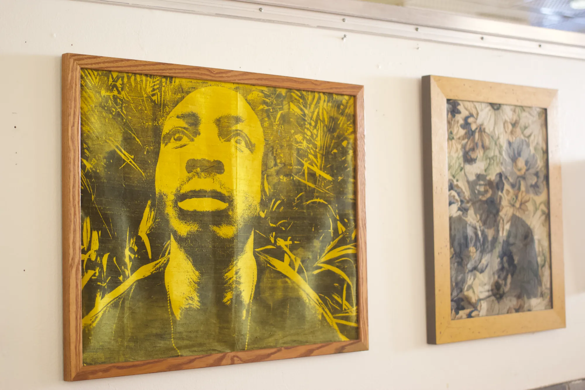 This was the piece that first made me look up from my coffee earlier that week, exchanging books and cassettes with a new friend, to realize there was an exhibit on the cafe walls—one I wanted to learn more about from the artists themselves.