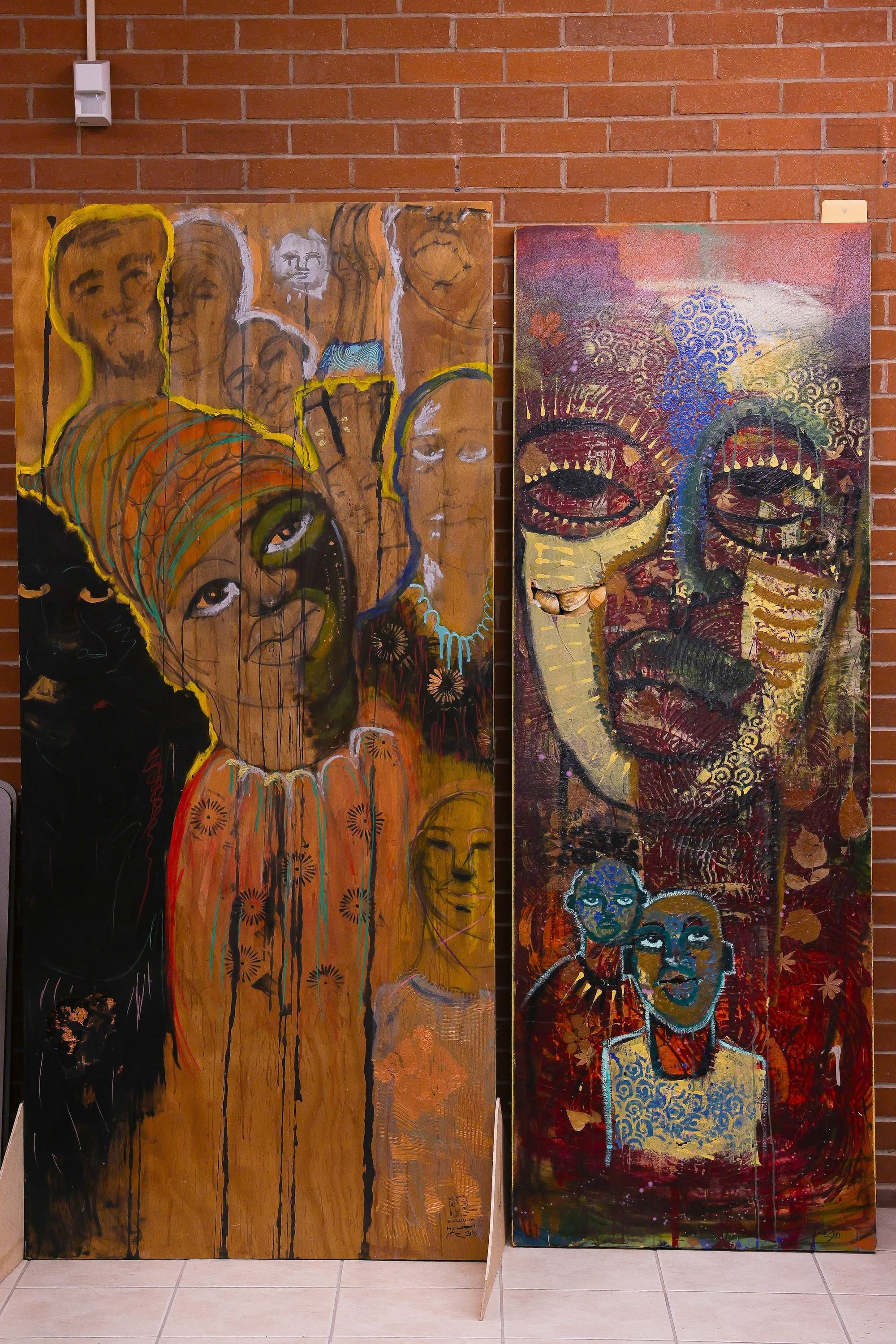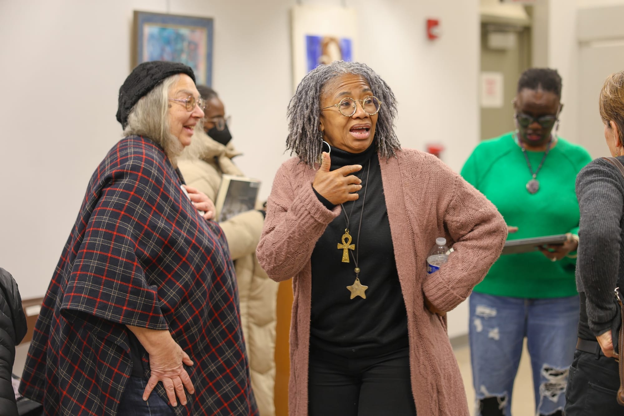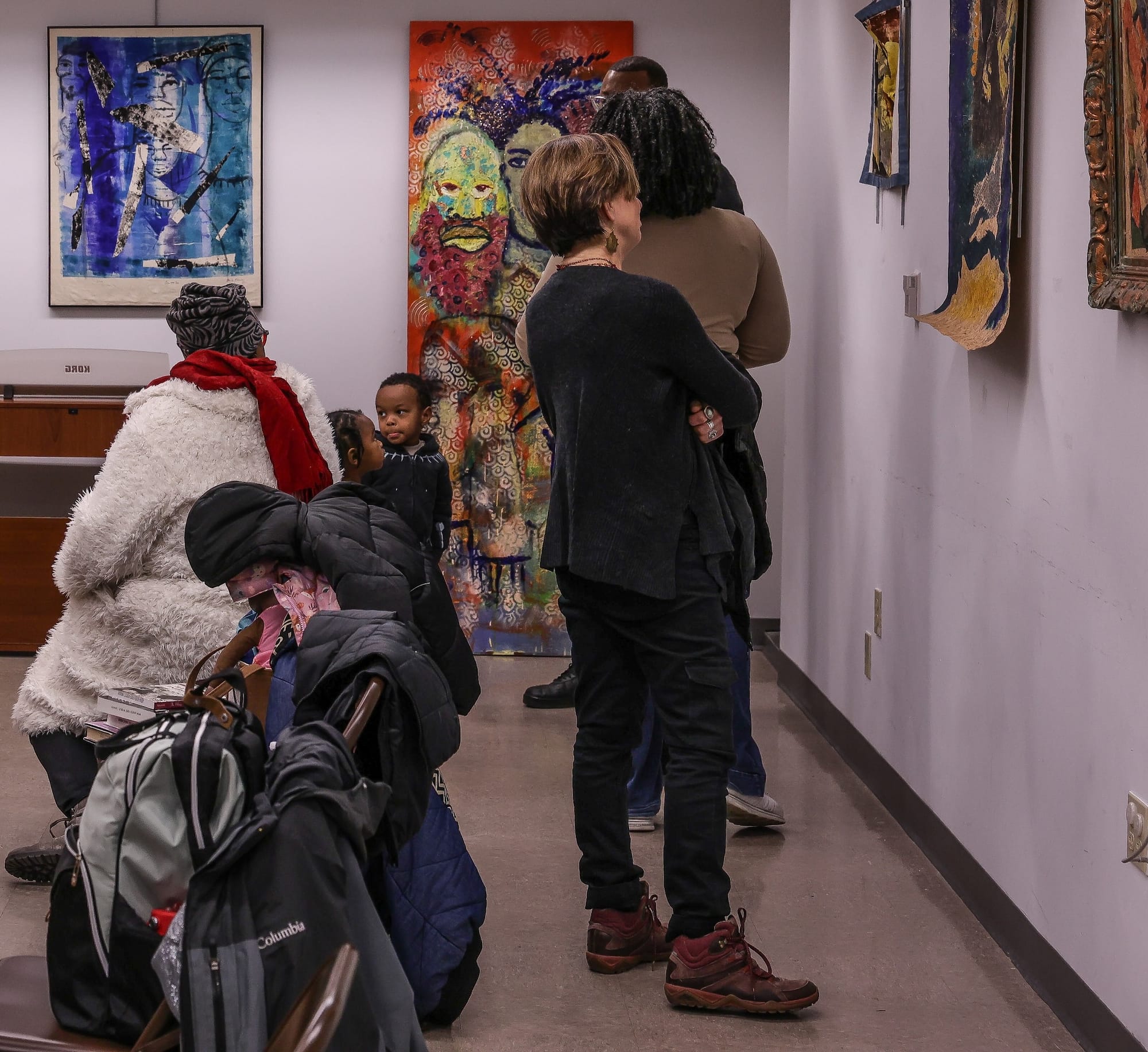 The reception marked the opening of “Shaunda Holloway: Abstract Rebel.” nico w. okoro of the bldg fund, which promotes artists of color, curated the exhibit at the Mitchell Branch library.