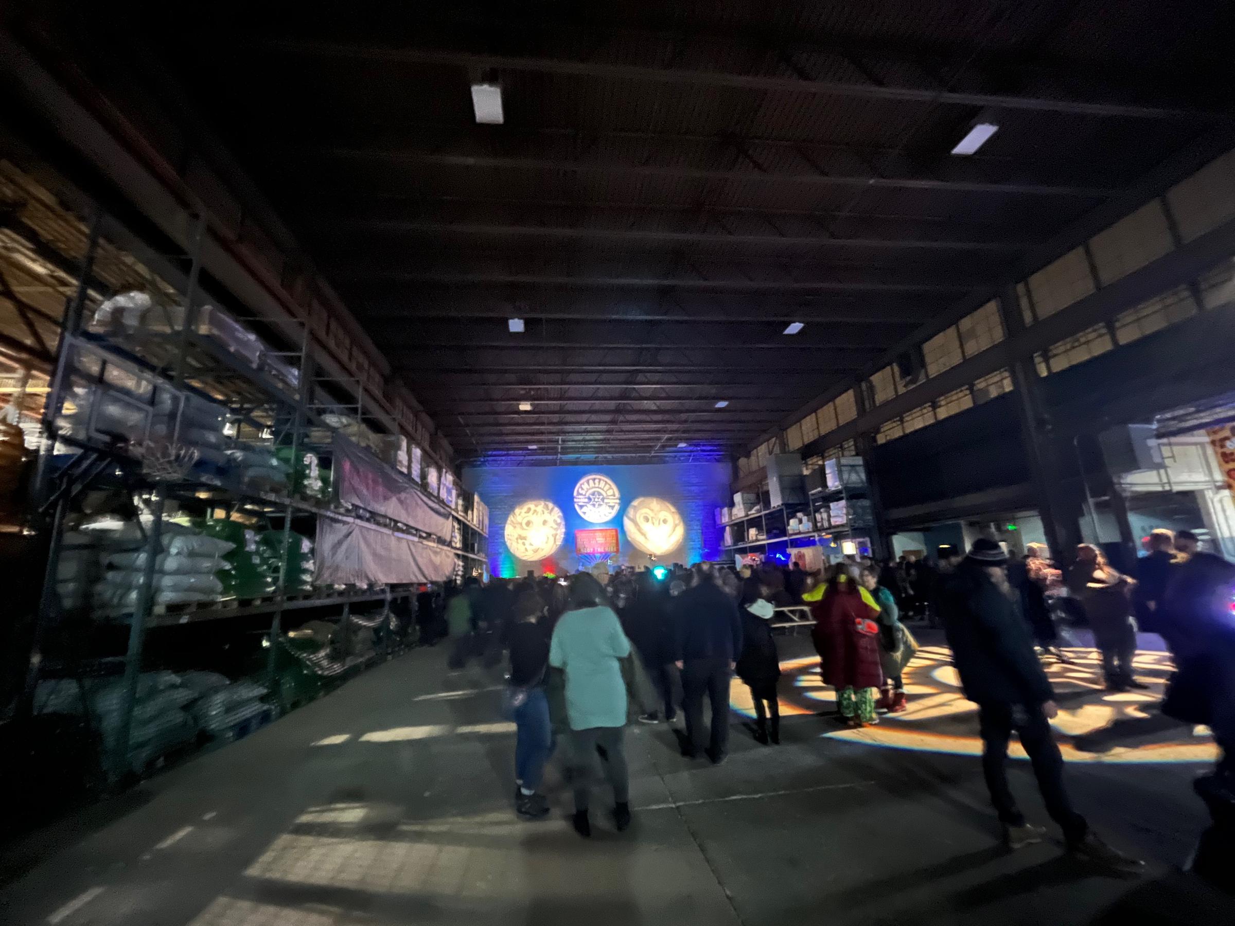 Breaching the entrance, visitors were enveloped in a gush of warm air pouring out from an airplane hangar-sized warehouse. Immediately inside, the gathering crowd queued up for the Pipeworks Brewing Company’s contribution to the festivities, “Hand Poured”— a kolsch custom brewed for the event.