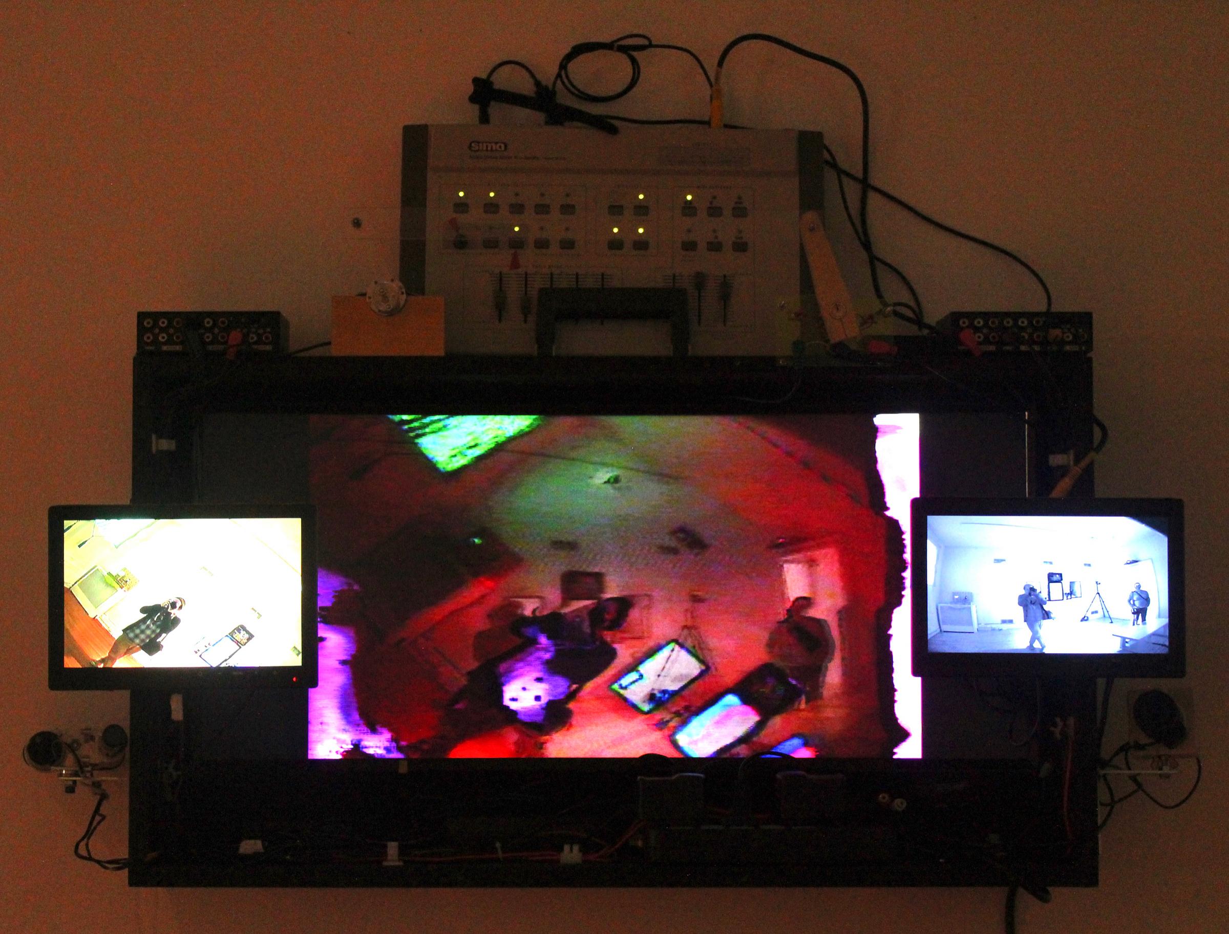 “The work here is impermanent in its performative, improvisational, and collaborative making. You, the viewer, are invited to participate as collaborator,” Young writes in an accompanying statement. “Your image will show through the circuitry of the machines. The machines are analog, and non-computational. No data is saved; there is no data! The images are fleeting and disappear as you leave the room. But feel free to capture your experiments with your cell phone camera. That data will be lost one way or another too.”