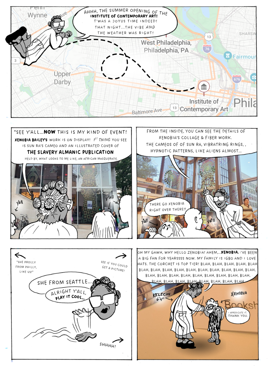 Kelechi Azu reflects on Xenobia Bailey's cosmic decal designs currently orbiting around the windows and walls of the Institute of Contemporary Art.