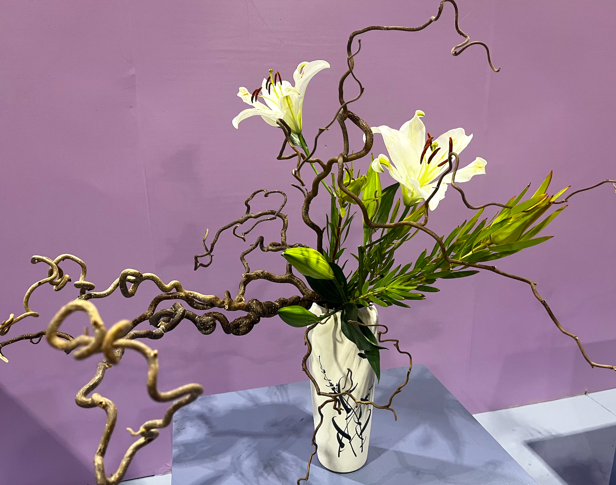 I was touched by on-view examples of ikebana, a centuries-old Japanese art of presenting flowers in their most natural form. The poetic name of the practice has been translated as “making flowers come alive,” and some argue its origin traces back to a Buddhist approach of invoking the gods through floral ceremonies. The prize-winning vases staged in Philadelphia this year expressed the racing curves of once sentient and searching branches. The flowers had been picked and cut for a particular purpose: to articulate the innate genius of our environment.