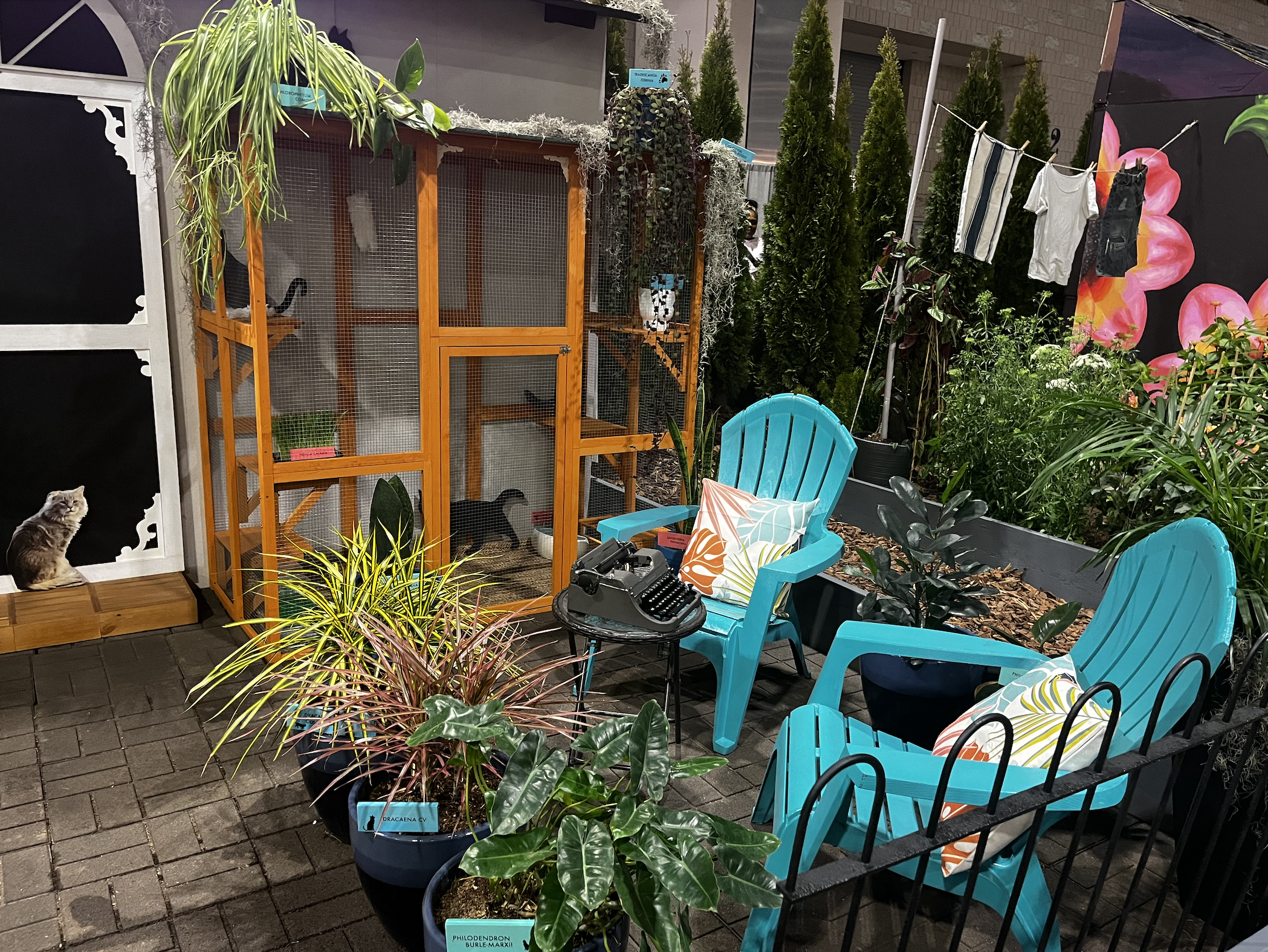 The worst part was the faux “Gardens of Tomorrow” designed to illustrate our imagined lifestyles down the line. The Men’s Garden Club of Philadelphia constructed a golf course that was, no joke, configured to make the “20th hole” easier for “duffers” to score. A next-door neighbor took a stab at incorporating a bizarre barrage of sustainable technology into their garden, including “edible landscaping, cell-engineered meat, rainwater catchment, manure composting, and an ethically designed enclosure.” That artist also covered the deck with cats (“a catio!” one passerby enthusiastically inferred) and a typewriter in an homage to Hemingway’s subtropical home in Key West that read as a disturbing return to defensive pretension by America’s liberal loners.