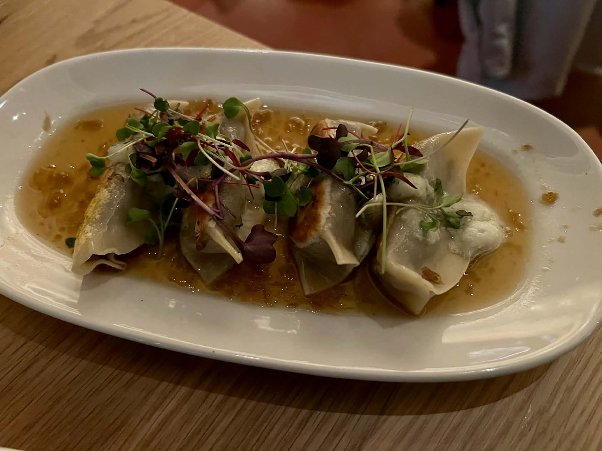 The oxtail potstickers were served with caramelized onion jus and a white wasabi cream, which was surprisingly mild and didn’t overpower the taste of the dish. The oxtail filling was rich, with a strong meat flavor. I don’t personally enjoy a strong taste of meat, but it’s a great option for those who do.