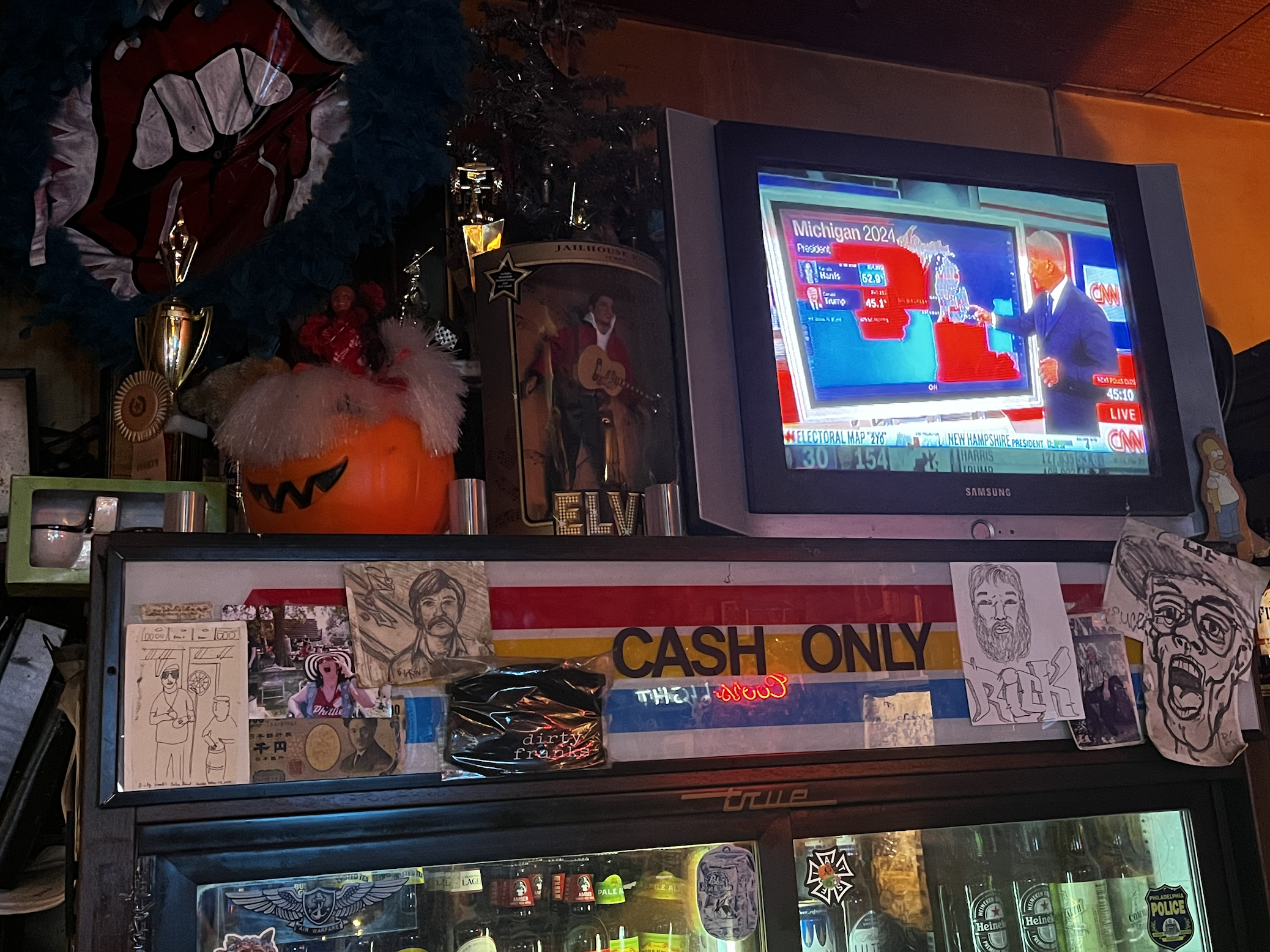 While boxy CRT and LCD monitors made clear that their presidential candidate was headed for a loss Tuesday night, the crowd at famous Philly dive bar Dirty Frank’s turned their night around by turning the jukebox up.