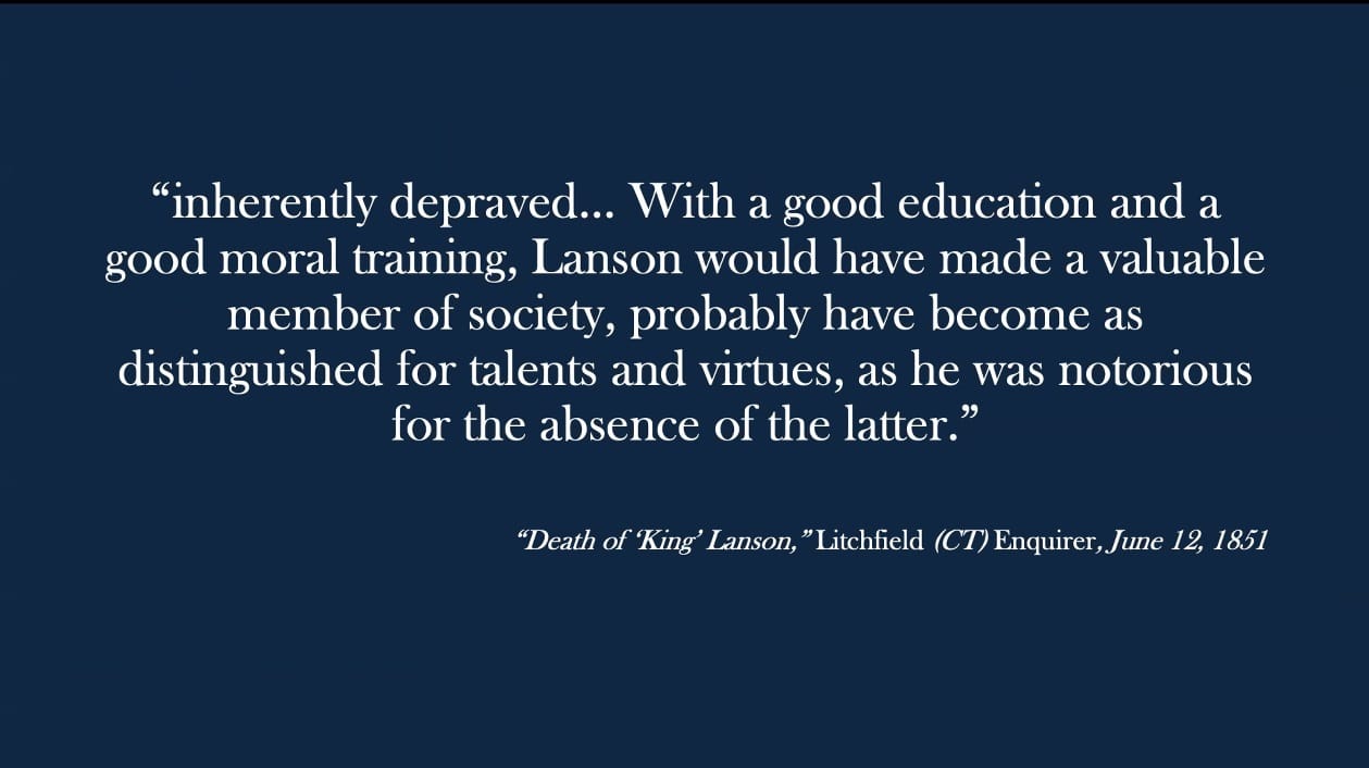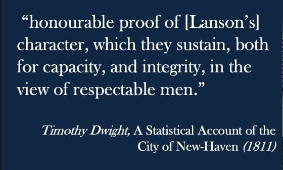 Lanson was also a strong proponent of temperance, supporting the movement despite the fact that he ran taverns that served alcohol. It was ironic, then, that when powerful whites in New Haven coveted the land he’d developed, part of the smear campaign used against him was that he encouraged drunkenness among the African American population in the city. Lanson’s reputation went from being well-regarded ...