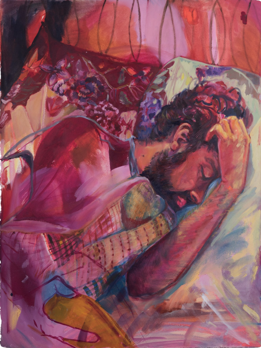 Wehrwein’s array of paintings and multi-media drawings on display inside Pentimenti Art Gallery show human subjects visually integrated into habitats built to protect and represent their person: Bedrooms, porches, gardens. The domestic scenes visualize the boundaries that exist between ourselves and both the natural and constructed worlds that exist around us.