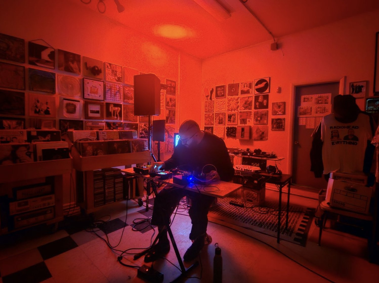 On Friday, the 'felt' temperature as reported by my phone at 8 p.m. outside of Launderette Records in Port Richmond was 16°F. The last thing on most people's minds was leaving the house, much less heading to North Philly to see a show. For those of us who did venture to Launderette to catch the three-band bill performing that January night, the shock of inescapable frigid air trapped the evening in a certain stillness, offering an apt background for a night of experimental electronic noise and ambient music. People in soft mittens, thick wool socks, and cushioned hoodies nestled around their heads provided a uniform cocoon for absorbing warmth and sound.