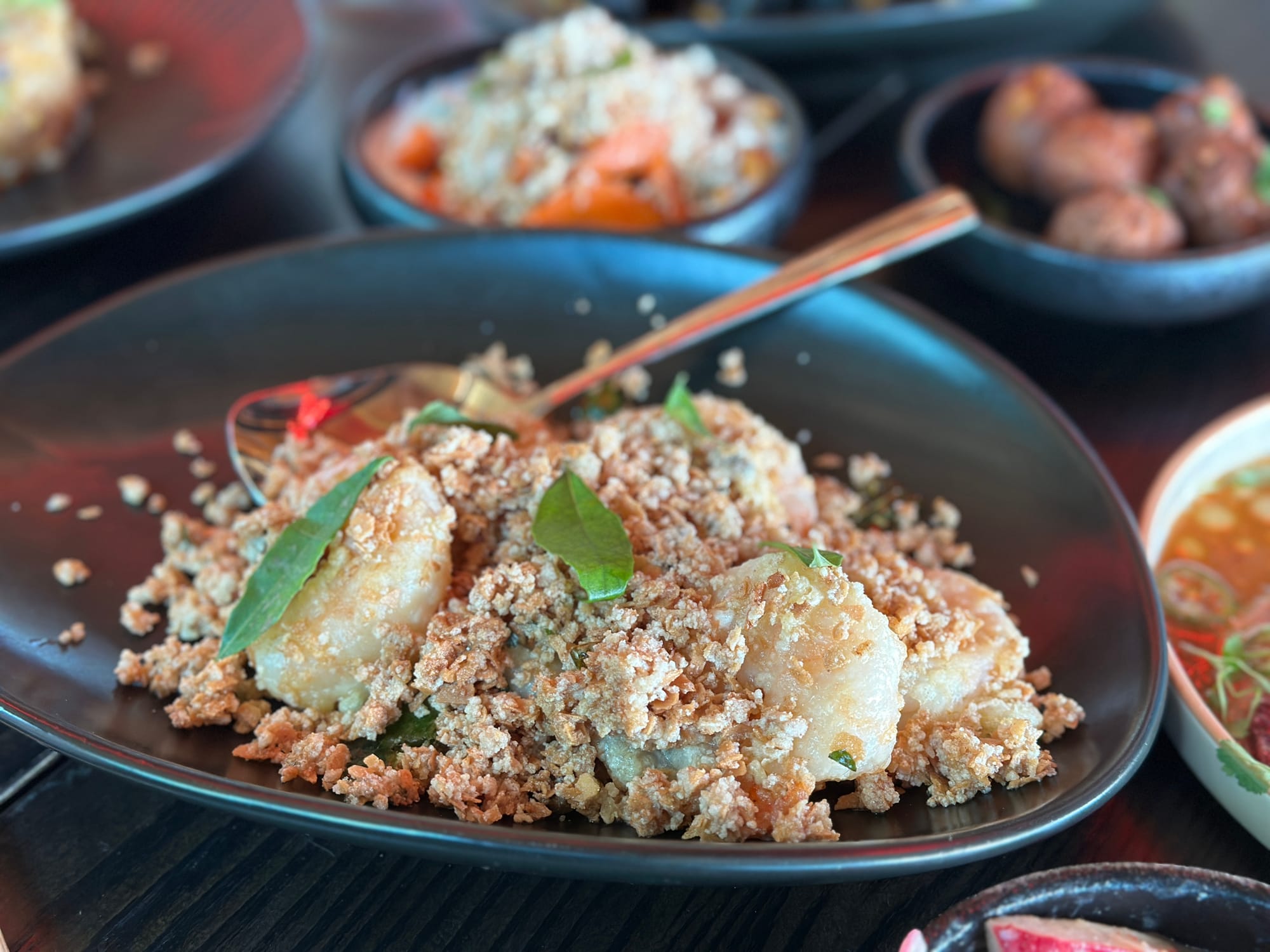 The wildcard dish of the night was the Cereal Shrimp ($24), a Singaporean-inspired standout featuring Thai chili, curry leaf, and Nestum cereal—a fine, toasty grain that acts like panko’s more elegant cousin. These shrimp are stunning. I’d wager they’re gently poached before being cloaked in the thinnest possible coating, followed by a quick flash-fry in the wok. The subtle sweetness of the shrimp is preserved, the texture divine—crispy in the most restrained way. Imagine coconut shrimp stripped of its garish blazer and re-dressed in something tailored and regal.