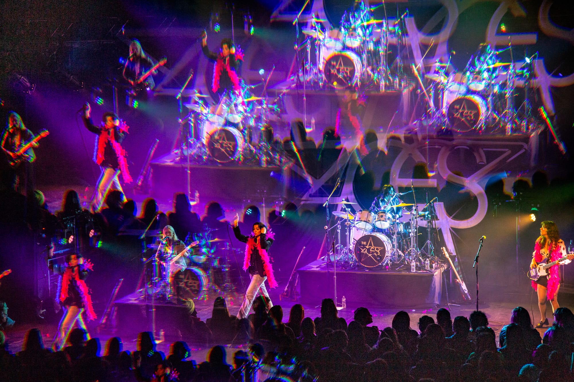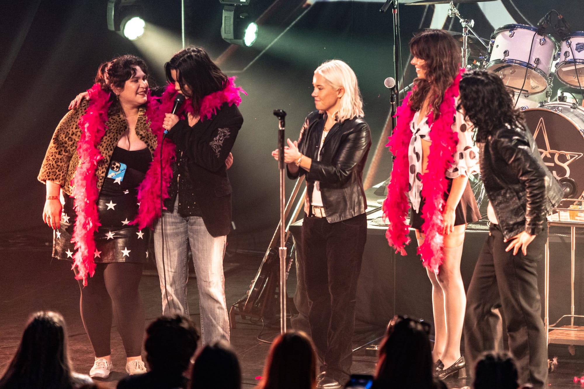 Finally, it was time for The Aces to go on. The lights went out in the venue and “Mr. Steal Your Girl” by Trey Songz started blaring from the speakers, hyping up the crowd for the very out and proud band about to come on stage. The cheers were deafening as the packed house welcomed their favorite band to Philadelphia. The Aces went straight into their set, only pausing after the first three songs to interact with the crowd. And interact they did. As someone who has covered my fair share of live music, it’s rare to experience a band that is so comfortable chatting with and interacting with their fans, even pausing the set at one point to choose a “best dressed” fan, known on their tour as the night’s “Gold Star Baby,” to bring on stage to praise, wrap in a fuzzy hot pink boa, and take a shot of alcohol with.