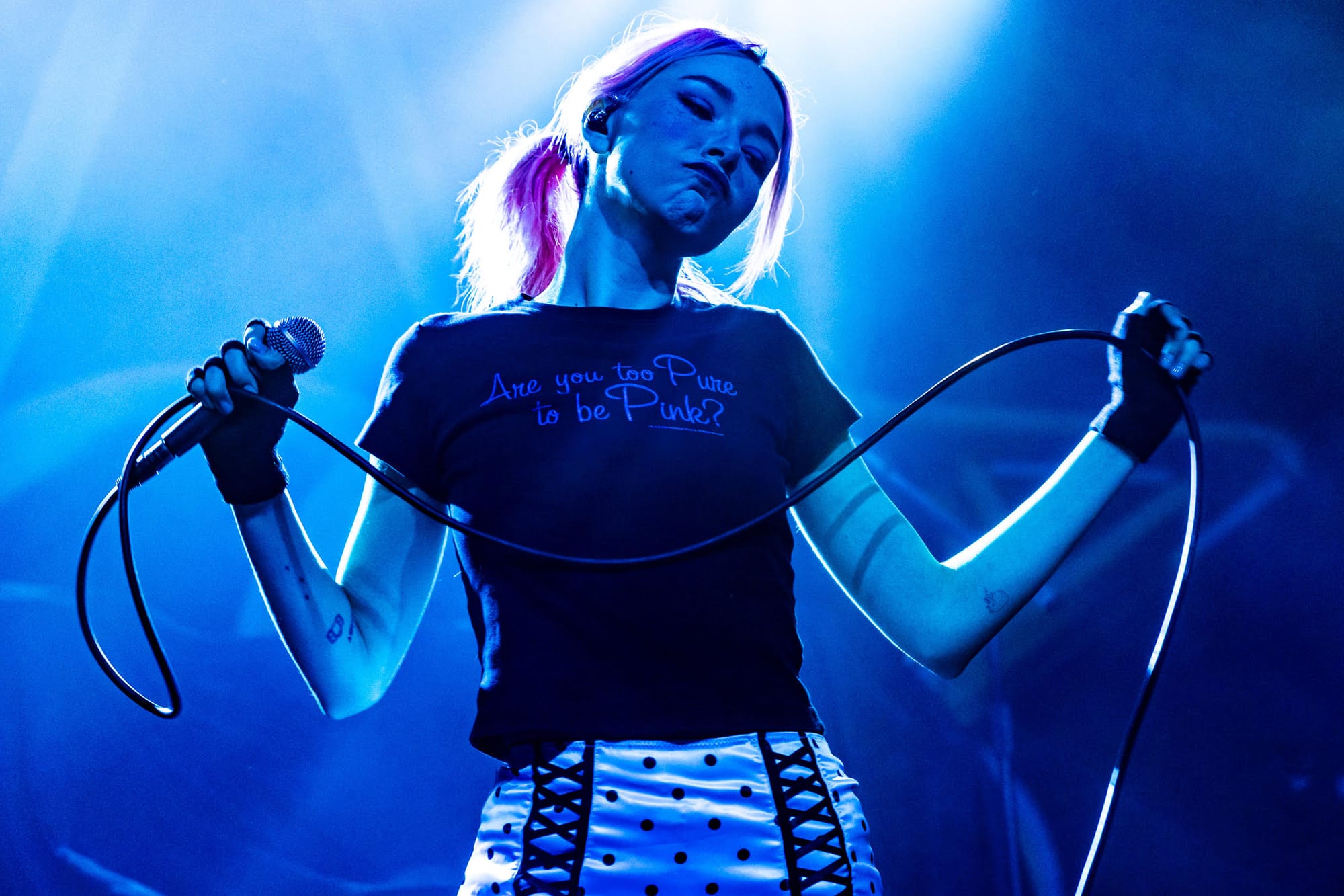 Lydia Night opened the show for them on the brisk November night and properly warmed up the crowd. I hadn’t heard Lydia’s music before, but despite her open report that she had only woken up three hours prior to show time, she was full of electric energy. Giving off Harley Quinn vibes, Lydia bounced around the stage interacting with the crowd the whole time: “I want to see you dancing,” she called out, "You think you’re just watching me, but I’m watching you too!”