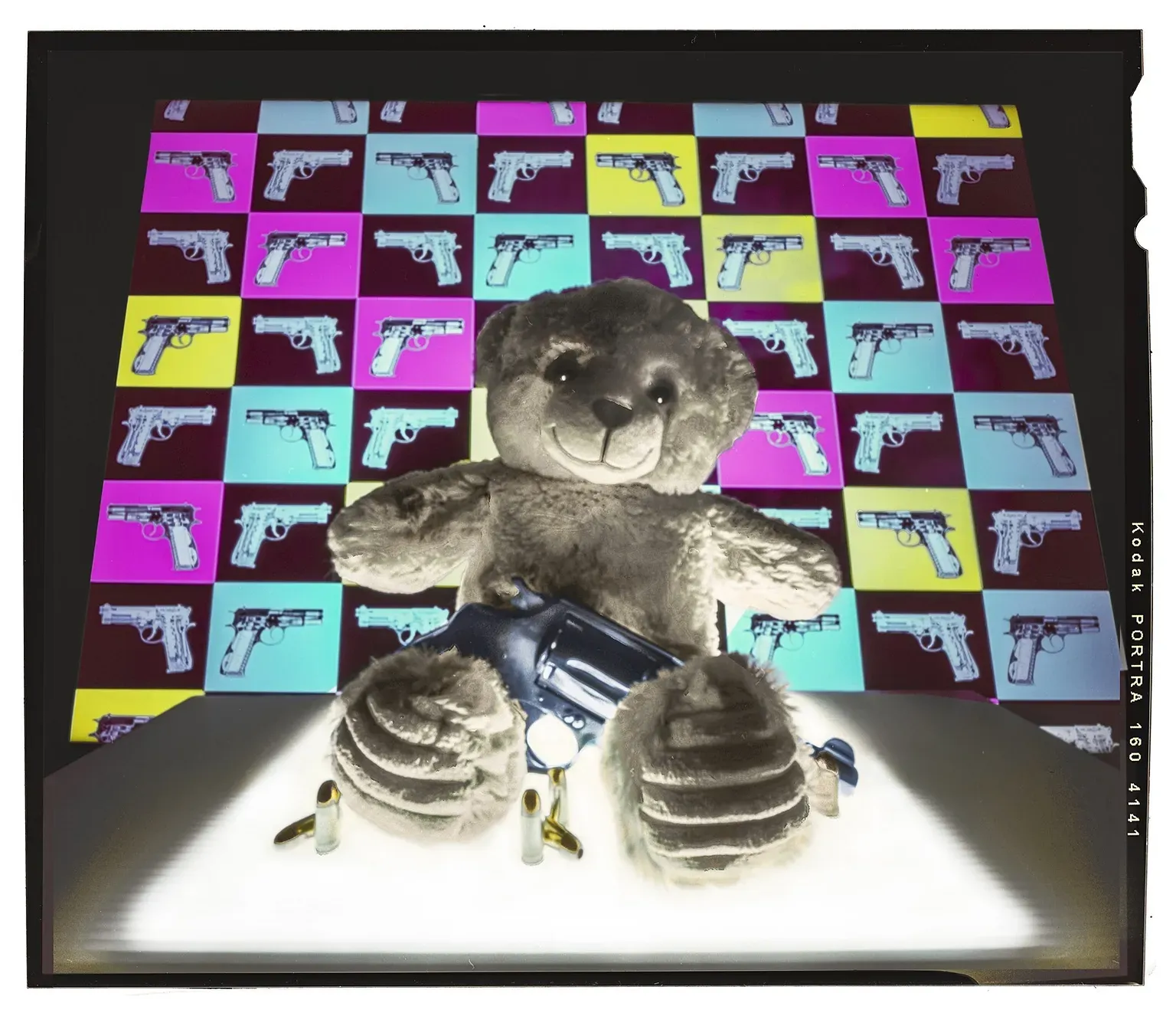 A gun is a terrifying object. Its only purpose is to inflict grave injury or death. So seeing it juxtaposed against a teddy bear in Disguise_TeddySmilesColt38Special drives home the hell that we’ve allowed ourselves to fall into. The teddy bear’s smile is the perfect visual representation of the way we raise our children in a society soaked with guns. There are consequences for those choices.Guns are the leading cause of death for children and teens, which is such an insane statistic that I almost couldn’t believe it. Almost.