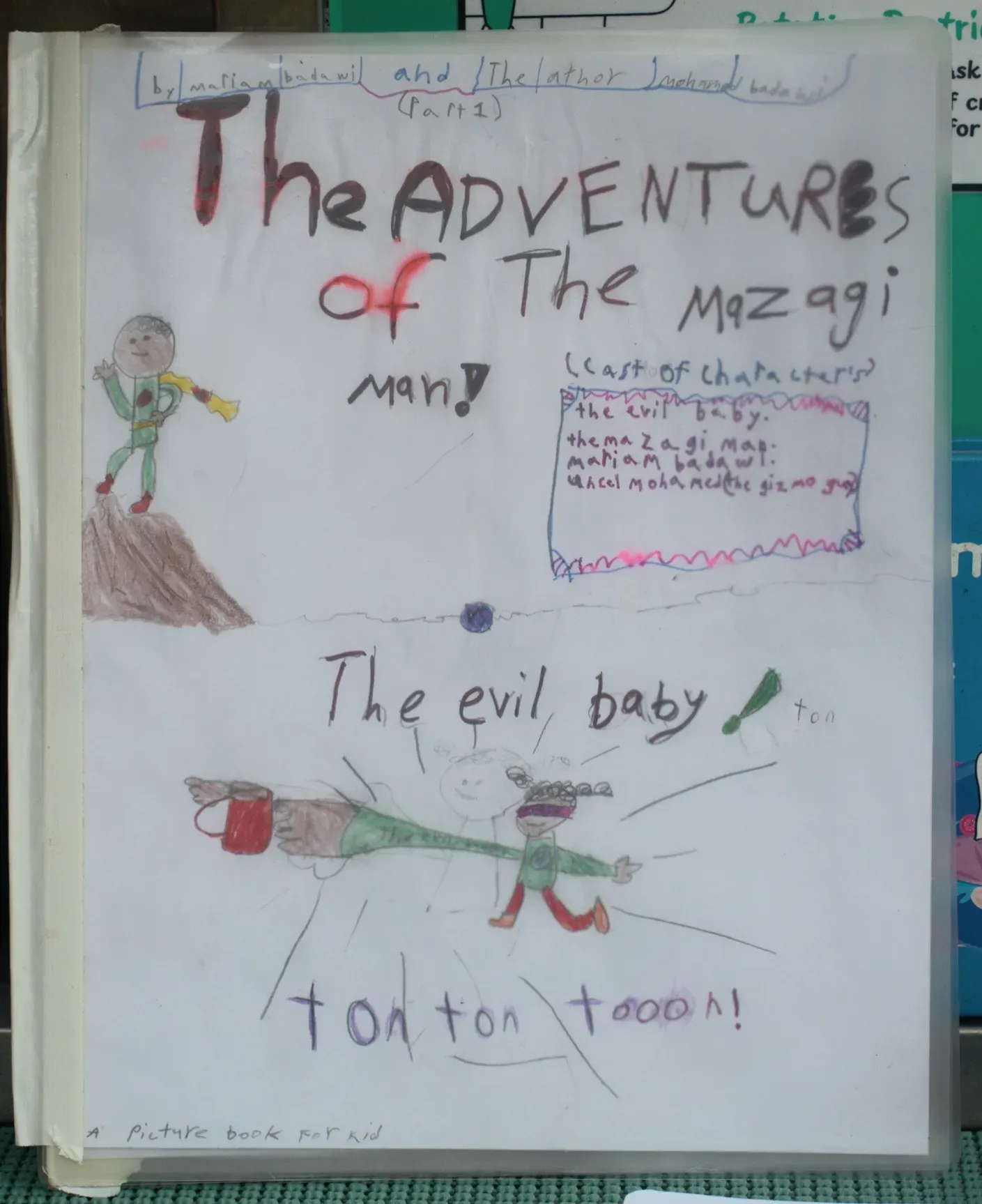 In the comic book version of Badawi’s new venture, 8-year-old niece Mariam makes an appearance herself as the Mazagi Man’s trusty sidekick Yumi. The evil sleepy baby shares an uncanny resemblance (and name) with Mariam’s infant sister Safiay.