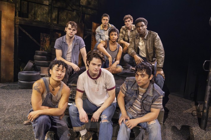 What can you do with what you have? That question applies to people as well as possessions. It also applies to the process of translating fiction rooted in real life into musical theater. How independence is interlocked with connection, choice with fate, love with pain—the Shakespearean themes that swirl through Hinton’s book find their strongest expression here when we’re allowed to just be with them through the bodies of these kids, the gold light spilling through a wrecked movie screen, the daunting physics of action and consequence, and the silence of eyes watching dreams rise and fall like the sun.