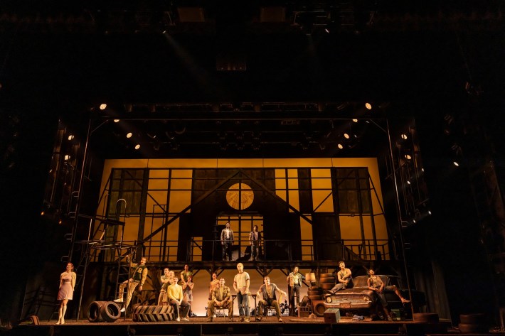 Director Danya Taymor comes to The Outsiders from an incredible run directing contemporary plays; she won another Tony this year for John Proctor Is The Villain. With a team of world-class lighting and production designers, she’s created a visual world that marries necessity with love, hard realities with soulful dreams. The stage is full of the stuff of little-city life—a rusted out car, climbable piles of tires, a kitchen table and a single lamp spilling an amber glow—and it all has a lived-with feel, like these kids have been moving these bits of steel and rubber around for years, like their elders before them.