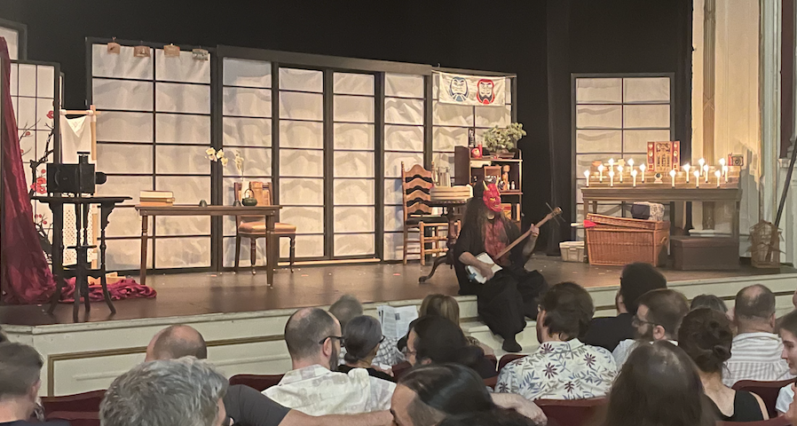 The play’s meta critique of cultural appropriation took center stage when it was revealed that Schreiben had stolen his bag of tricks from his Japanese mentor, Abe, on his last visit to the country. Abe arrived mid-show from Japan with the intent of recovering his things but quickly discovered that Schreiben had carelessly initiated the Kaidanki. After explaining the threat of mishandling this ritual, Abe decided they should finish the game together lest grave harm befall the audience.