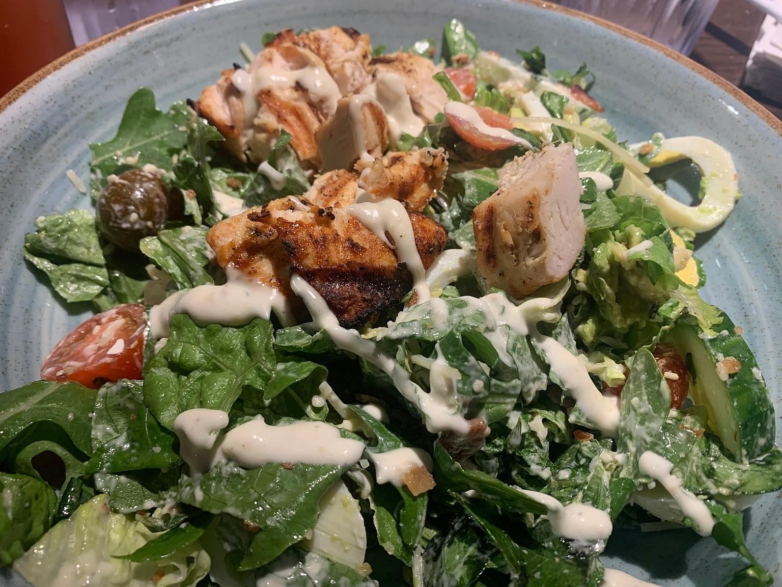 First I went with the Cali Avo Caesar Salad Bowl, made with grilled chicken, fresh avocado, tomatoes, bacon, cucumbers, croutons and a hard-boiled egg, topped with parmesan and Caesar dressing. Salad is one of those foods easier to mess up with various innovations than to improve. That’s not to say that the salad was bad. The ingredients were fresh and well made. The tomatoes in particular were sweet and flavorful. But it mostly felt like a bunch of stuff piled on top of a salad instead of a cohesive menu item.
