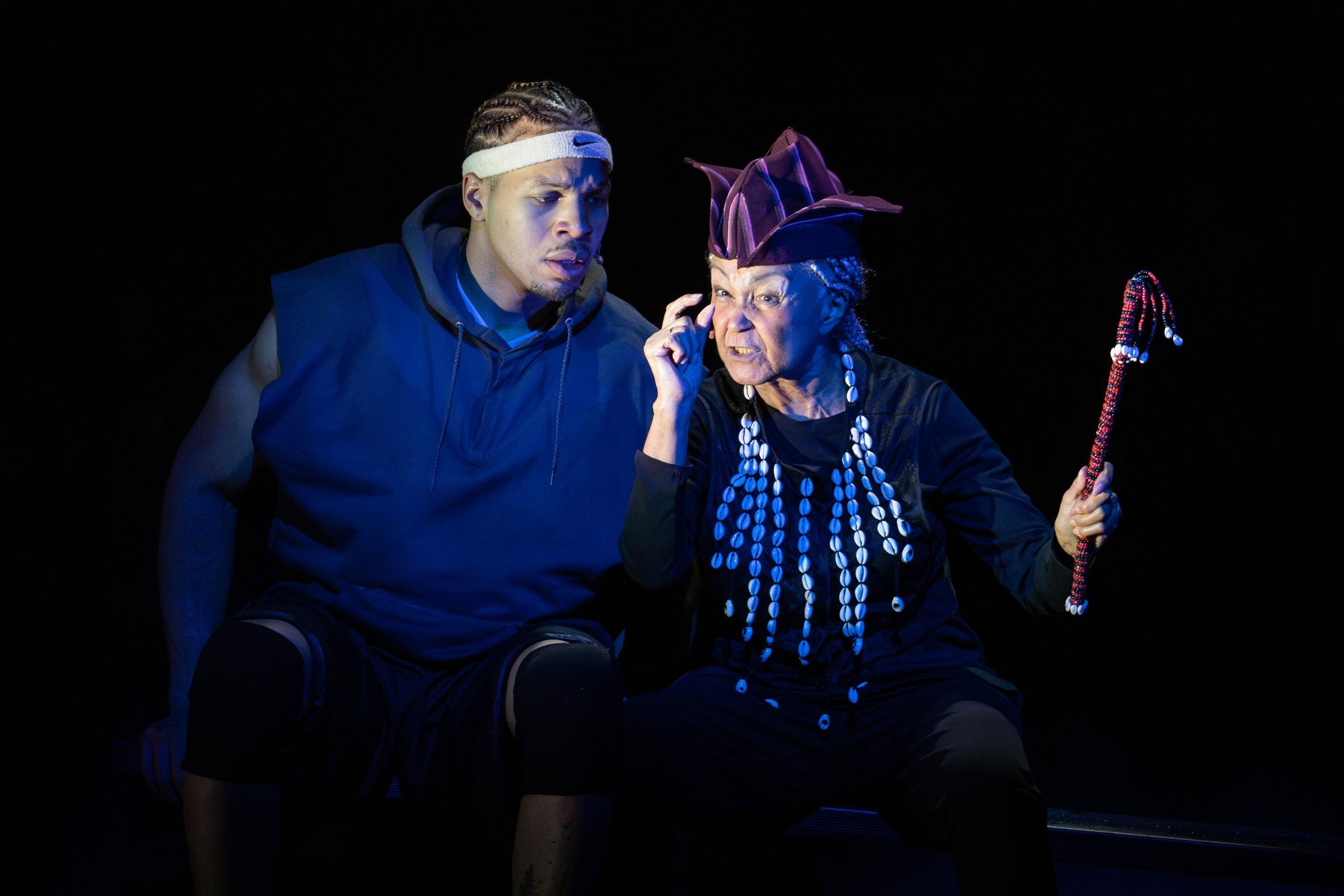 “Y’all ready?” Lizan Mitchell asks before stepping forward to deliver the first official line of the play as the “liminal trickster god and guardian of the crossroads,” Elegba. I know I am; this is the fifth play I’ve seen Mitchell in (including NYTW’s production of Aleshea Harris’ On Sugarland last year), and I’m awe-struck by her every time. Here, she portrays Elegba with a brazen, quirky wisdom that transcends time and space.