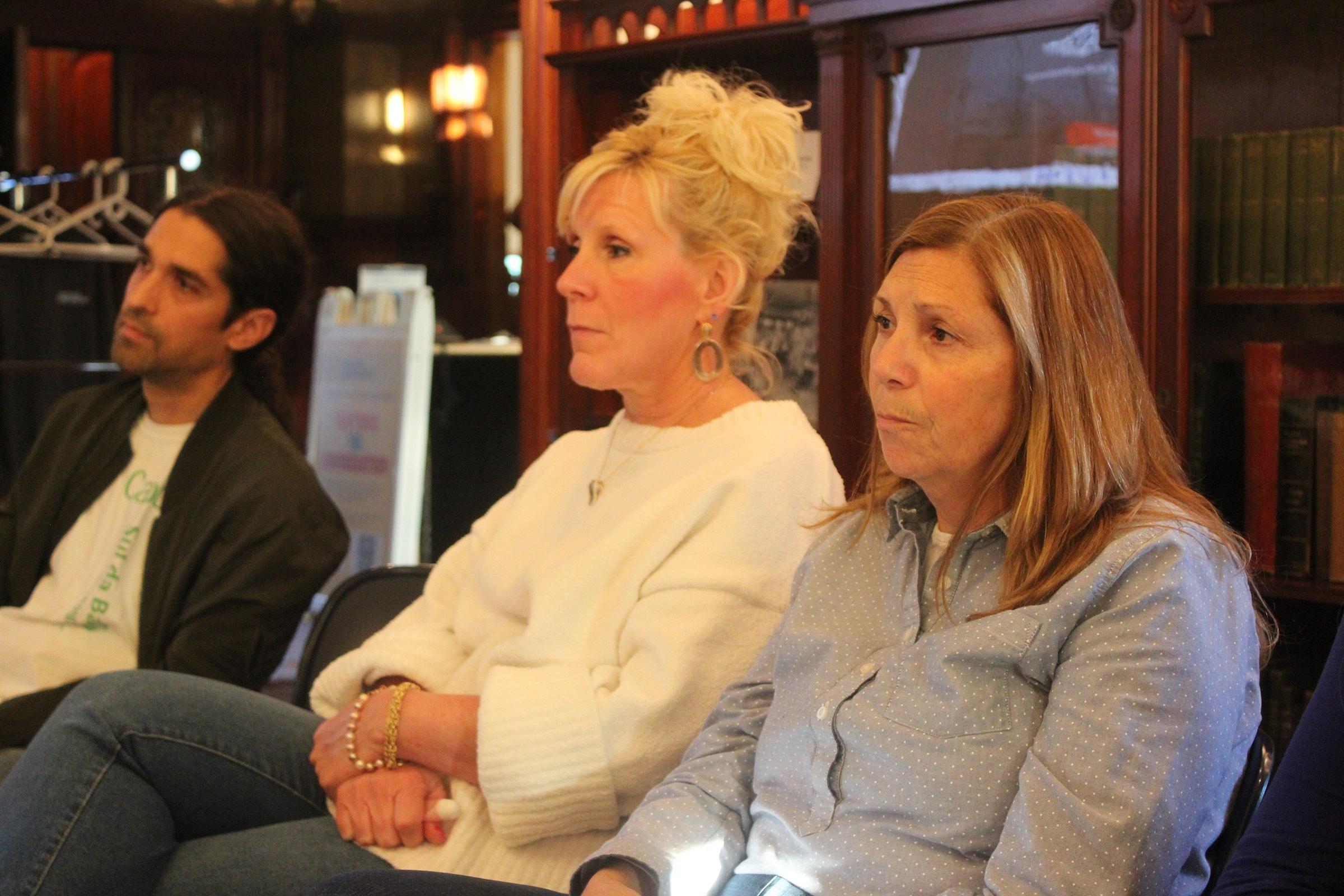 That’s when another woman in a white shirt jumped in. She shared the story of her son, who has been in and out of prison for the last 20 years. He’s currently awaiting sentencing. That has left him in educational limbo. Since he hasn’t been sentenced yet, he can’t use the library or enroll in any of the educational programs his facility offers. He’s been unable to access those resources for over a year.