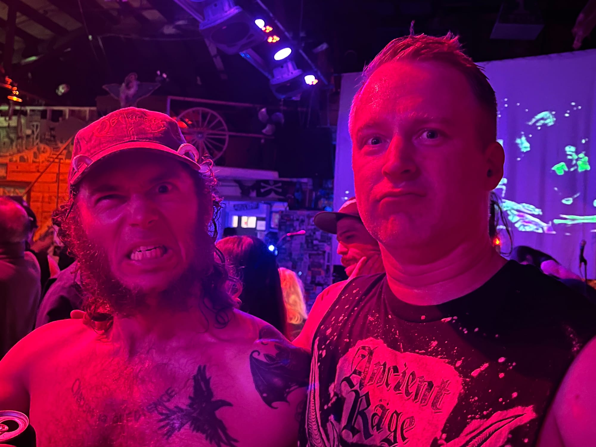 After Corpse Gutter’s ferocious set—their rasping, gravelly voices each taking turns—I gabbed with the pair. They told me that they’ve been a two-piece band for about 8 months. (Drummer Sam is also the bassist for Ancient Räge.) They said their “more serious project” is the four-piece band War of Knives which just released a 5-song EP, and has a single, “Holy Conquest,” on Spotify.