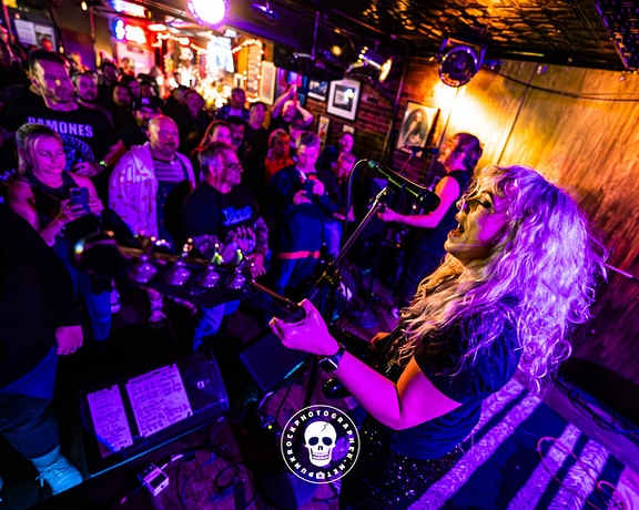 Around 11 p.m., The Dollyrots brought their fresh brand of sunny, pop-punk awesomeness to the stage, with married bandmates Kelly Ogden (bass and vocals) and Luis Cabezas (guitar and vocals) and guest drummer Simon Hancock kicking off their set with “I Do” (from 2017’s Whiplash Splash). The audience went nuts when they moved into “My Best Friend’s Hot” (from 2007’s Because I’m Awesome) which elicited a club-wide chant-along, followed by a quick pause.