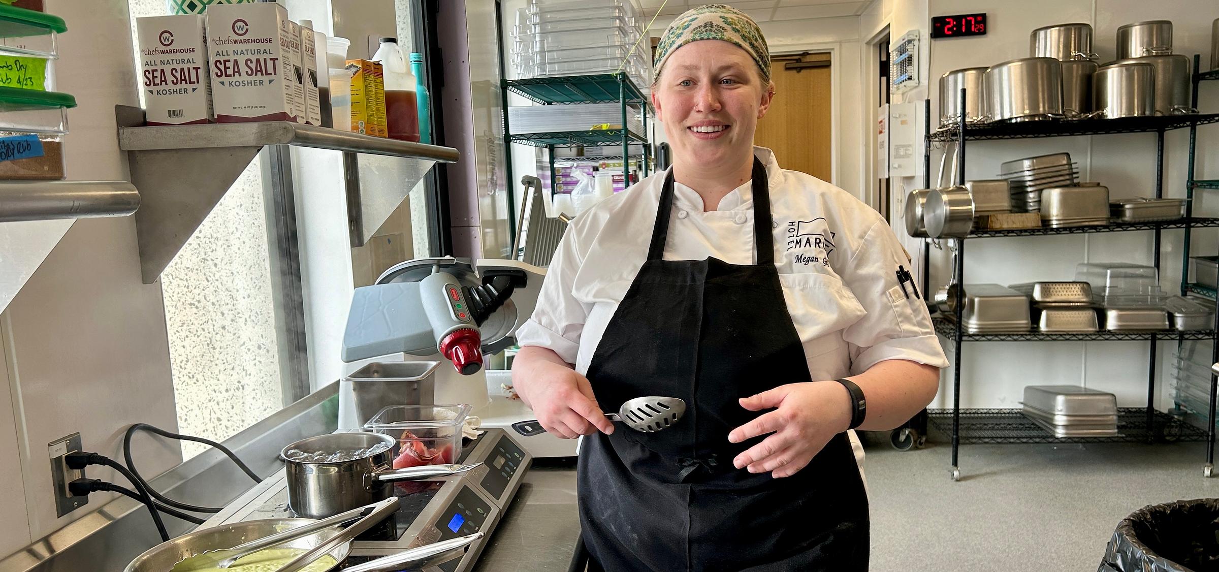 “She made it happen,” said Megan Gill, the 28-year-old executive chef at BLDG, a 70-seat, three-meal restaurant inside the iconic Hotel Marcel on Sargent Drive, as she added the pasta into boiling, salted water on a recent afternoon.