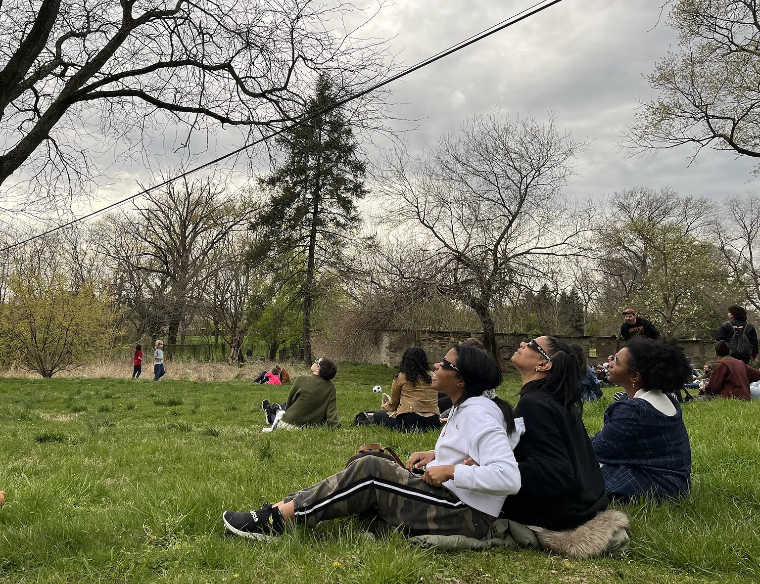 The Woodlands in West Philly looked picturesque under the half-baked sun Monday afternoon, with picnic blankets, magnolia leaves, and bicycles strewn across the historic lawns as neighbors sought out their personal vision of a rare celestial show: the solar eclipse.